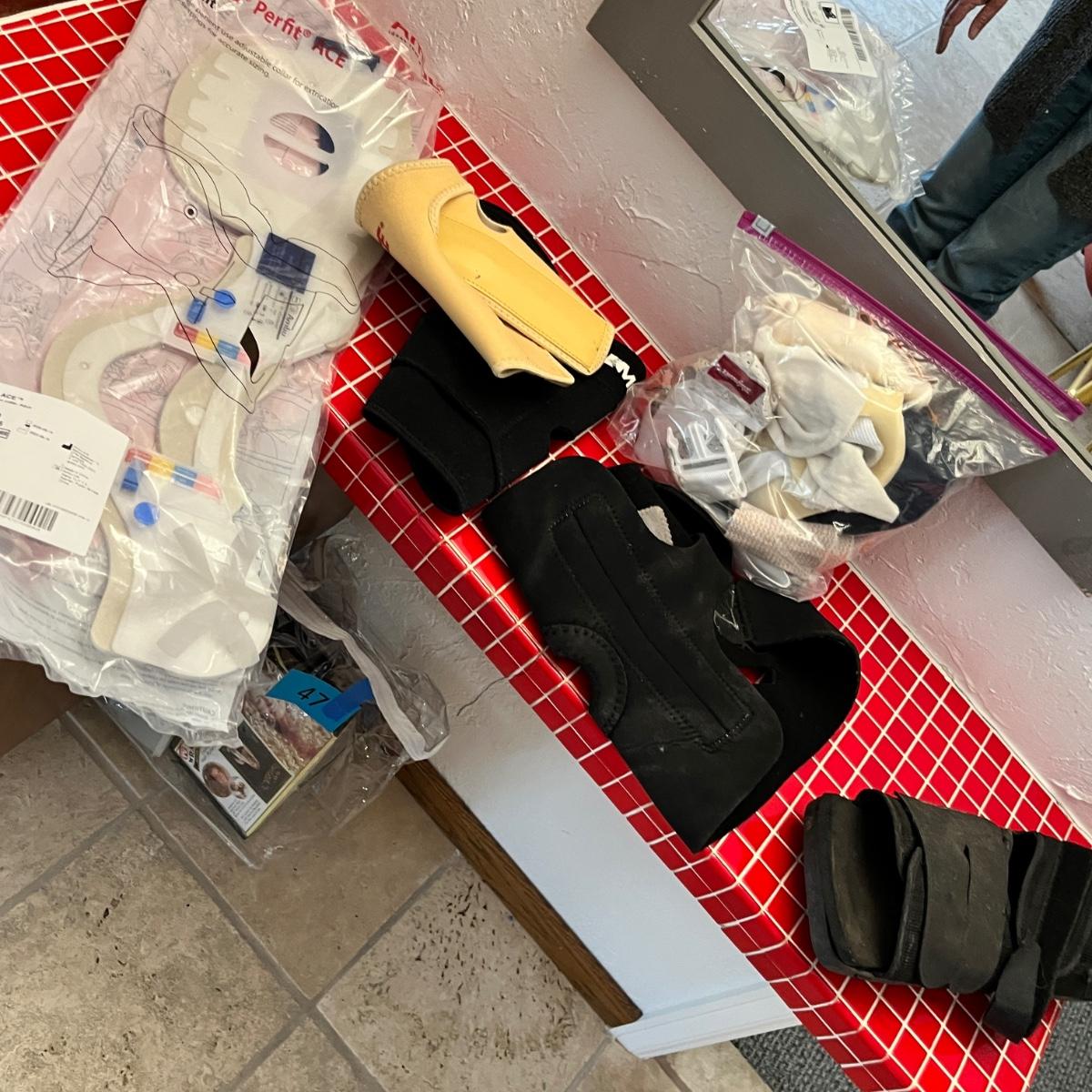 8. Sizes are approximate, you can estimate as our lot number signs are 3.5" long. Also we use an 18" & 36" measuring stick.  We try on certain things to do actual measurements. No guarantees on actual sizes, we try our best!