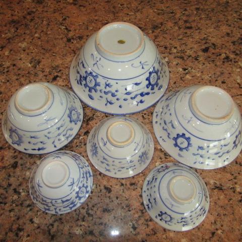 LOT 48 CERAMIC NESTING BOWLS WITH ASIAN THEME