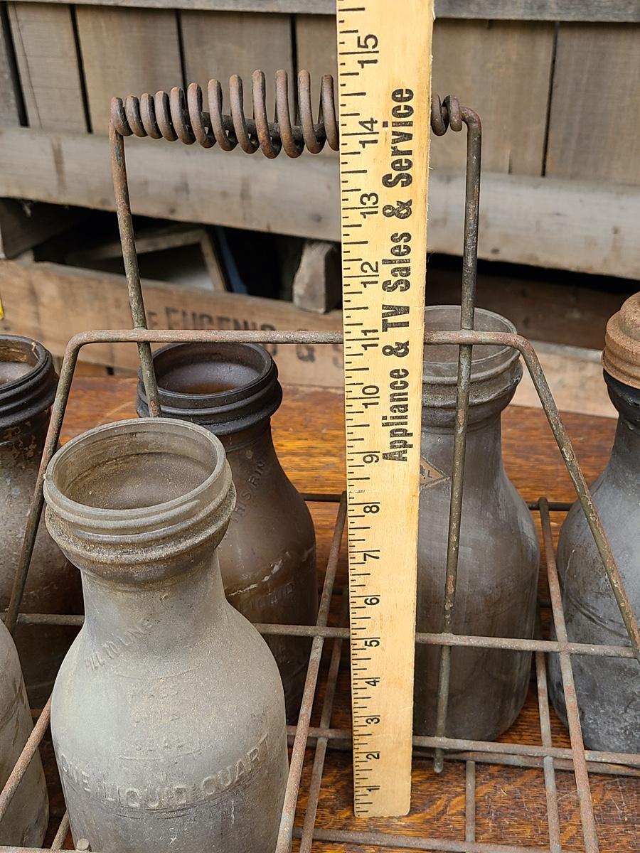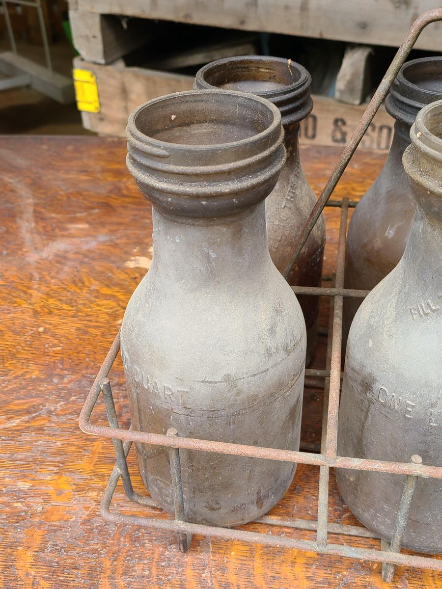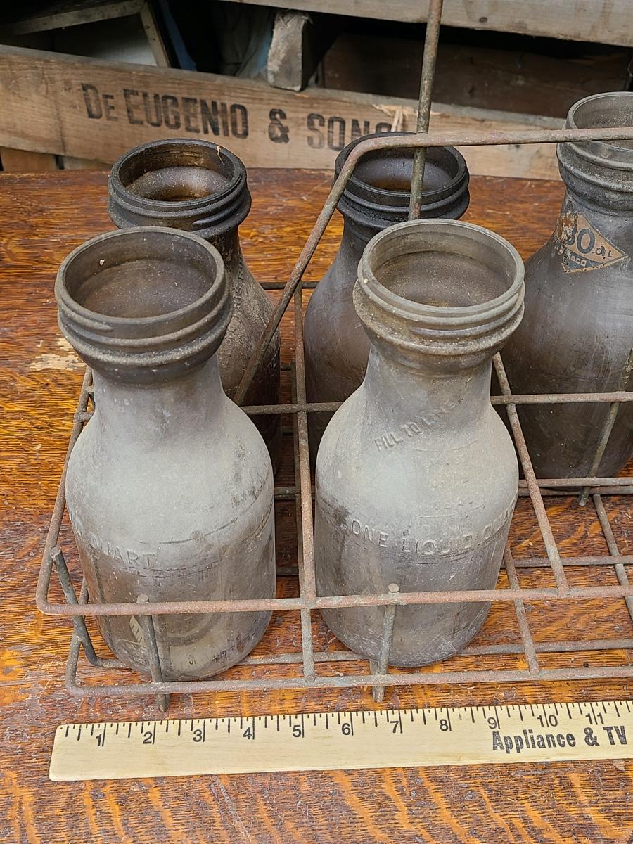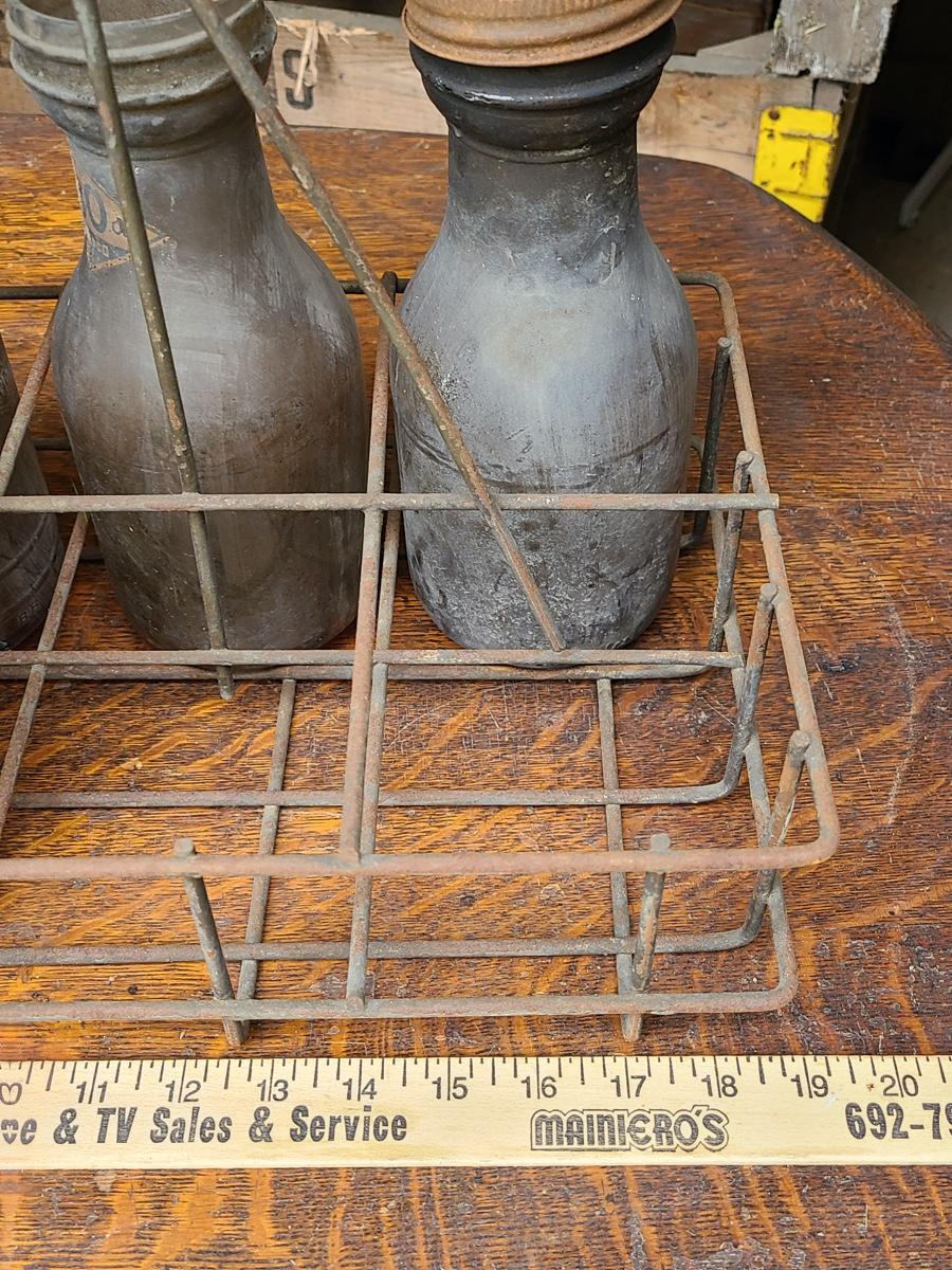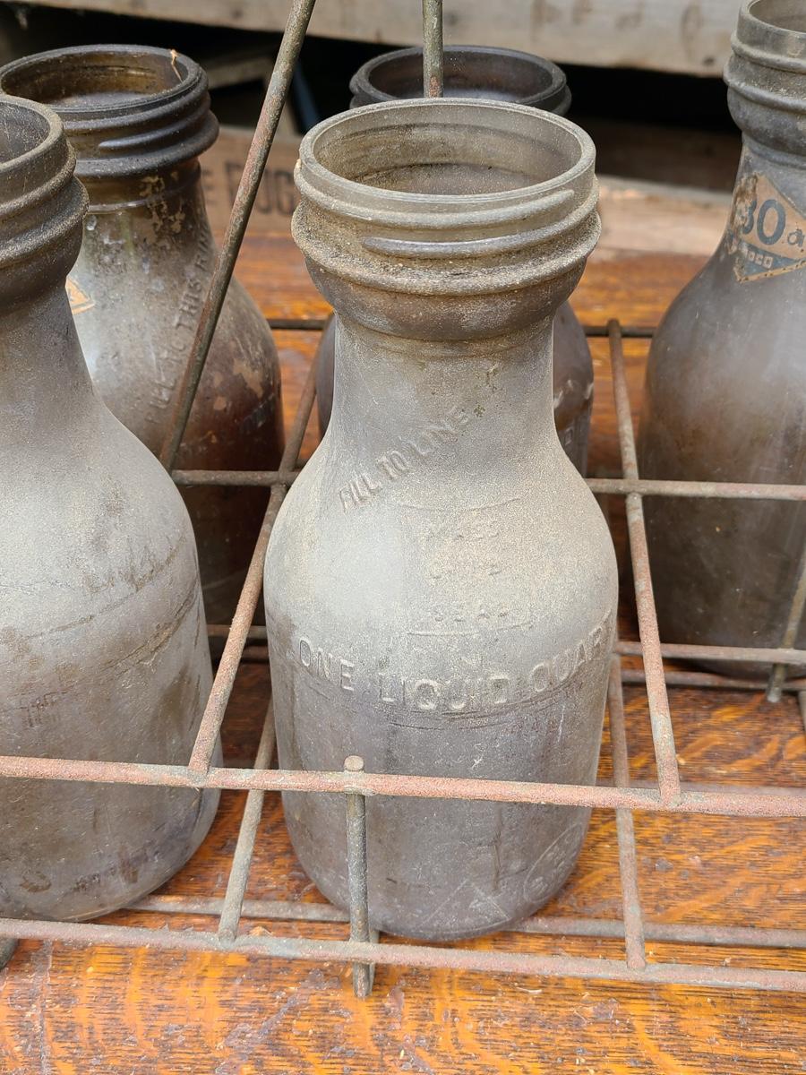 Lot 483: Vintage/Antique Oil Bottles (Sunoco stickers) and Carry Cage
