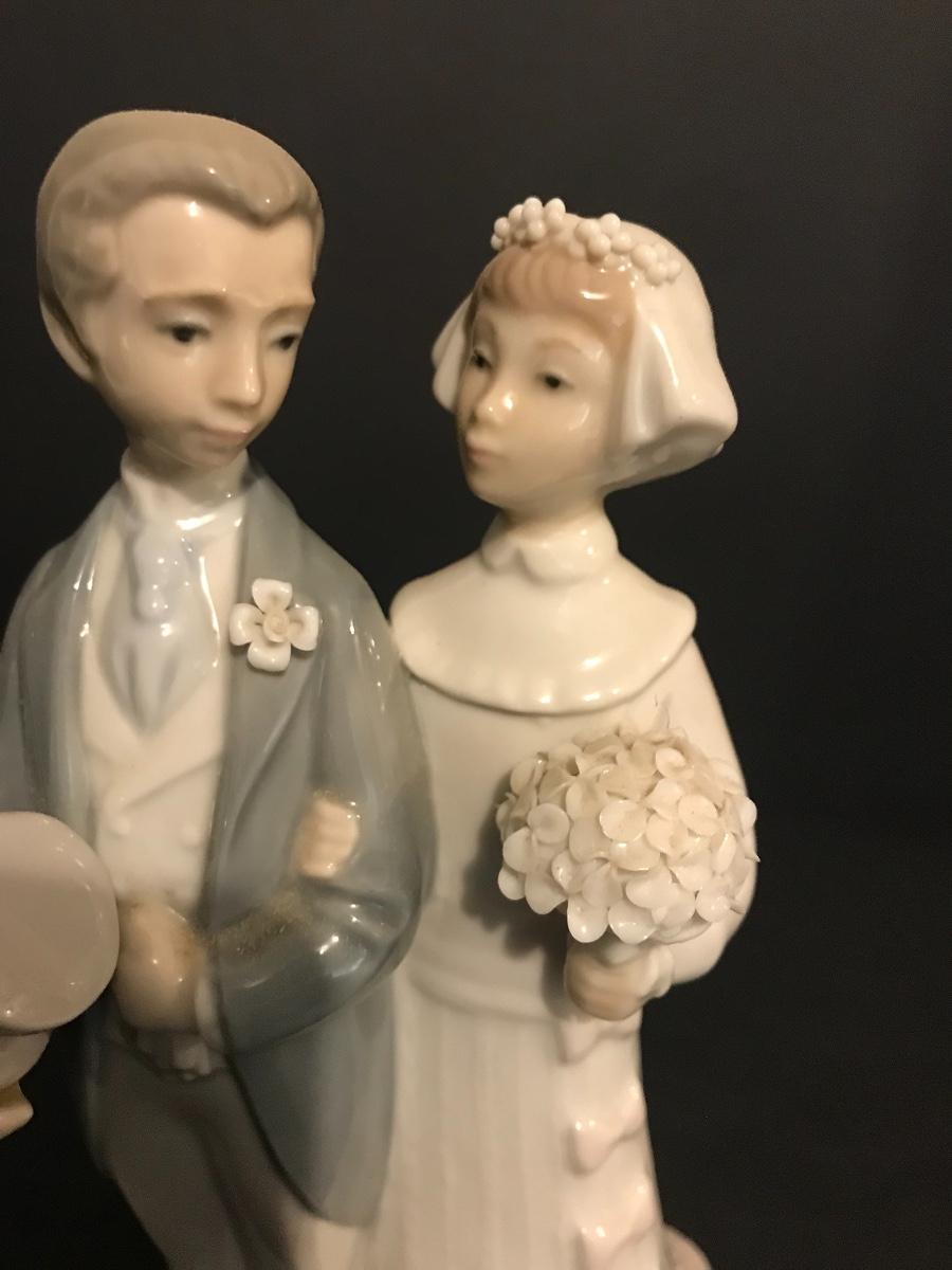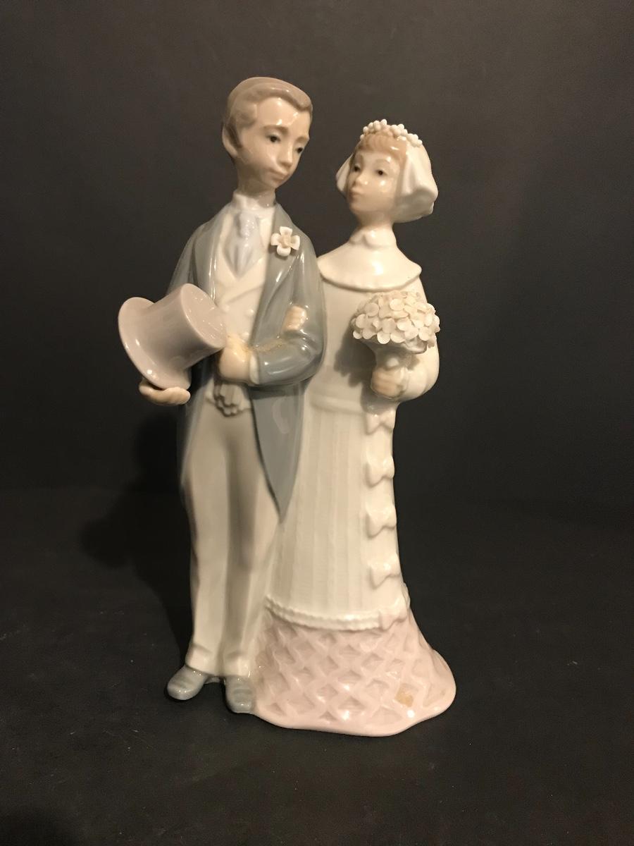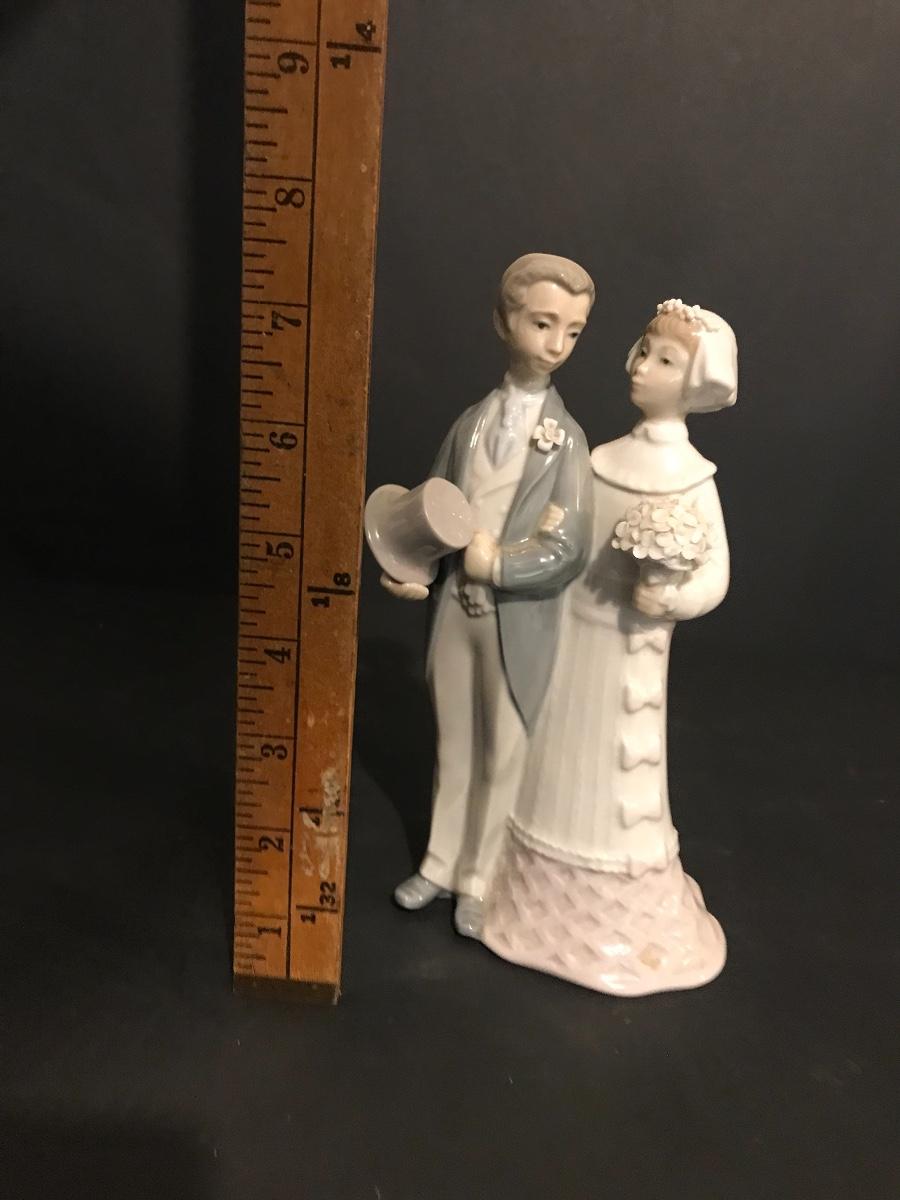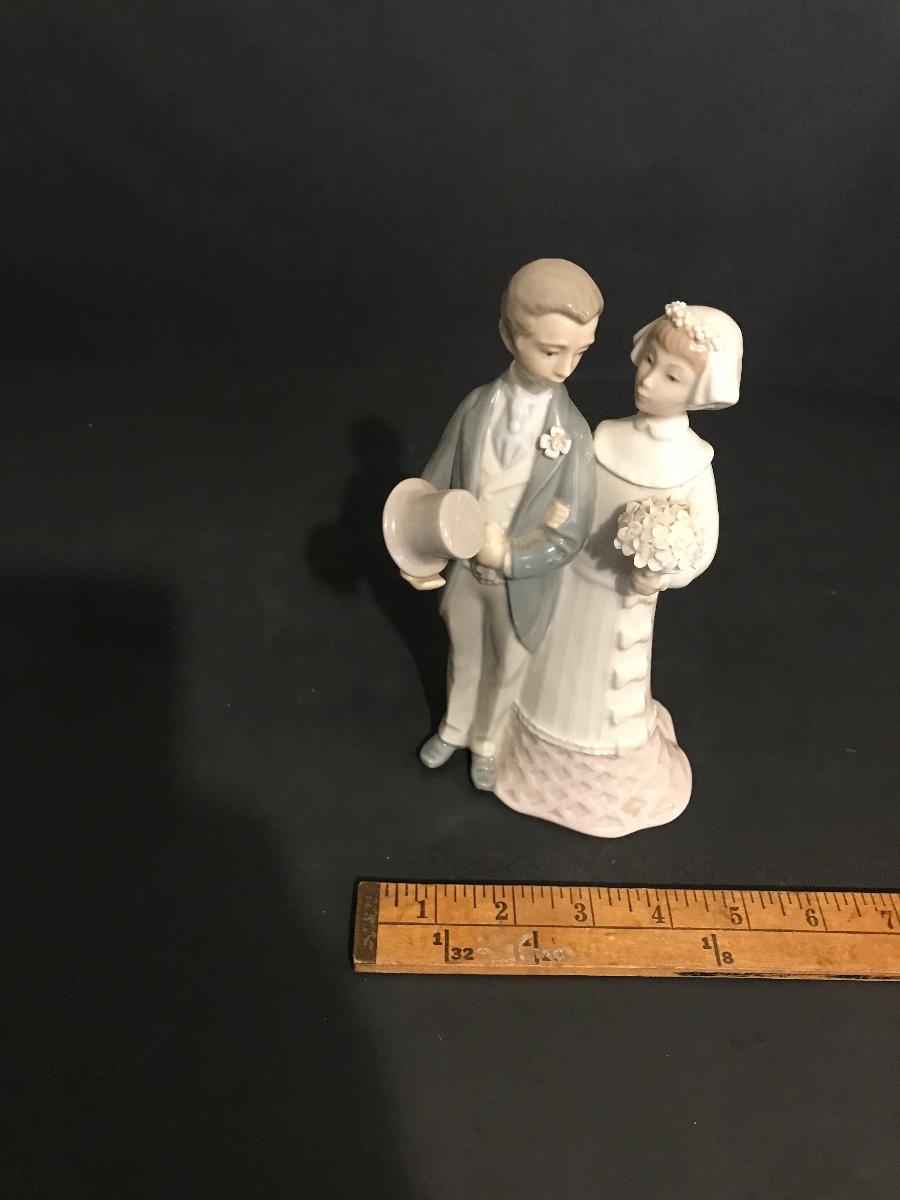 Bride & Groom #4808. All Lladros are in excellent vintage condition without original boxes, except where noted. All items have been inspected and any damages or imperfections have been photographed and noted to the best of our knowledge and ability. It is the responsibility of the buyer to inspect all pictures, as they are the best representation of the items. The pictures show condition, measurements if taken, and what is included in the lot. Upon pickup, it is the responsibility of the buyer to inspect their items prior to leaving the premises. Once the items leave the premises, there will be no refunds or returns. Buyers are also responsible for bringing their own boxes and packing materials for their items. Thank you.
