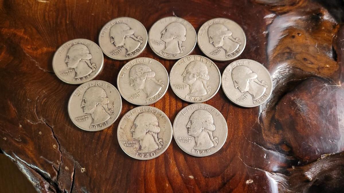 Lot 48: Assortment of (10) Pre-1965 90% Silver Quarters 1940's - 60's LOT #2