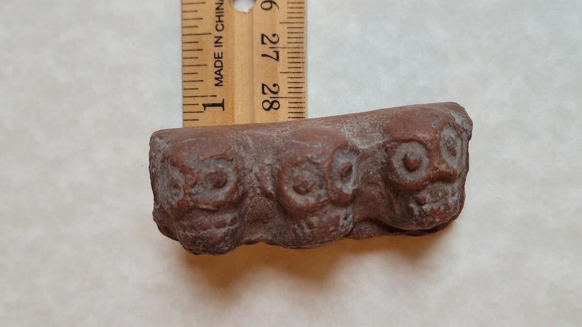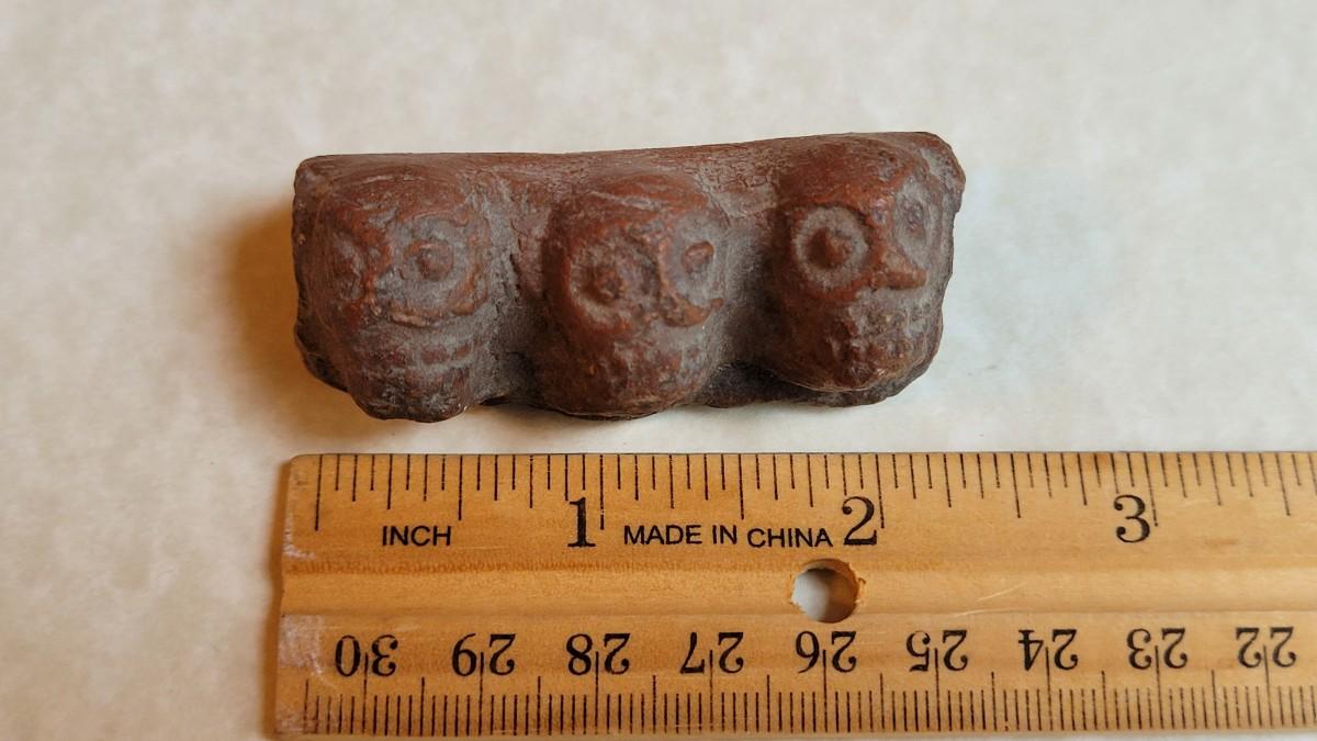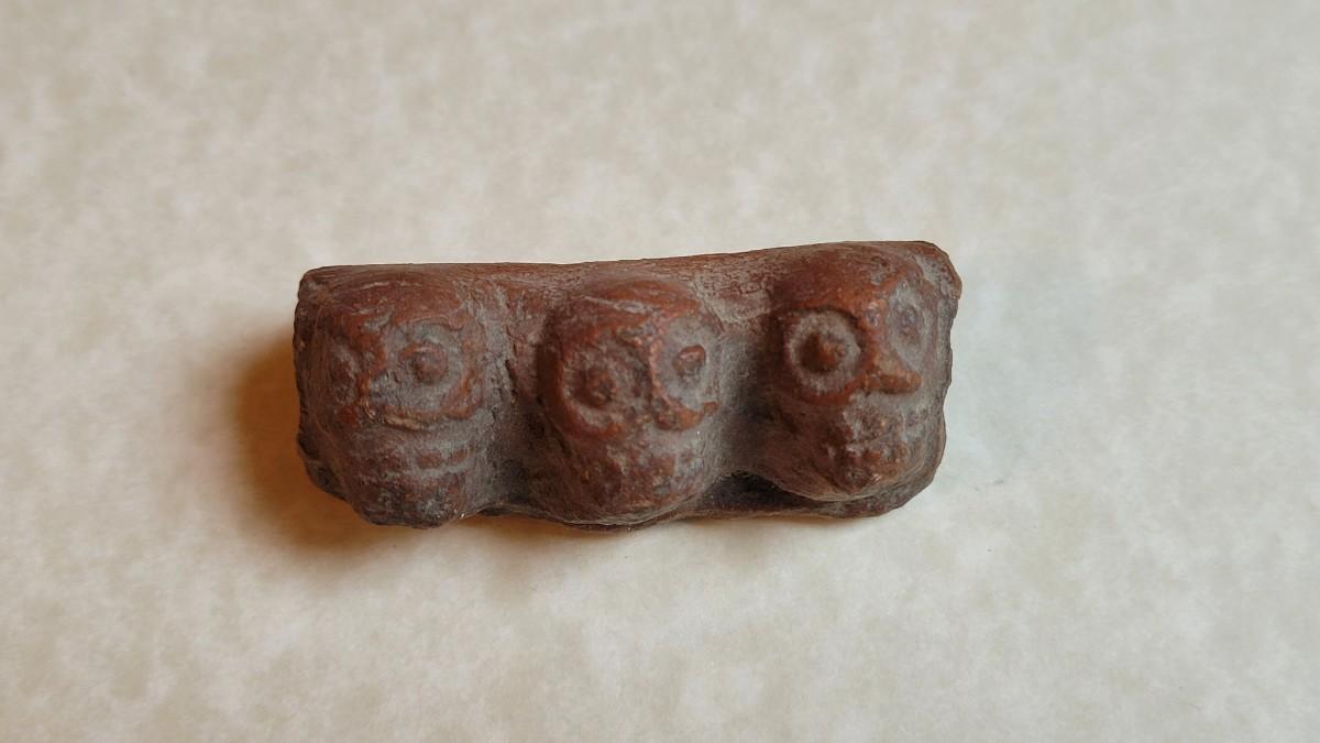 Lot 48: Pre-Columbian 3 Skulls Broken Trim Piece