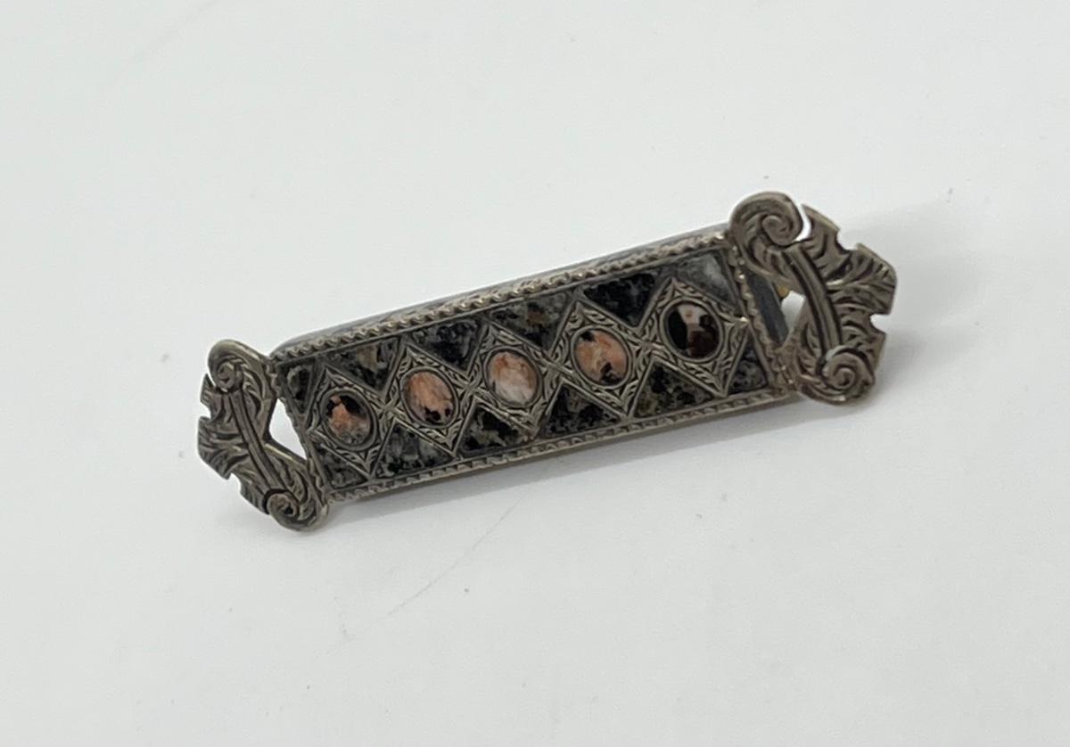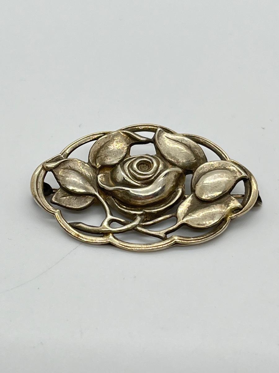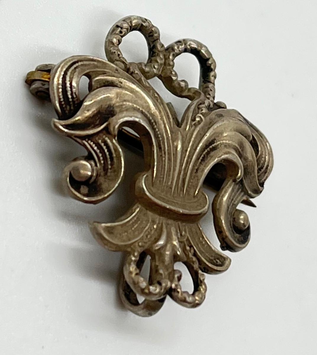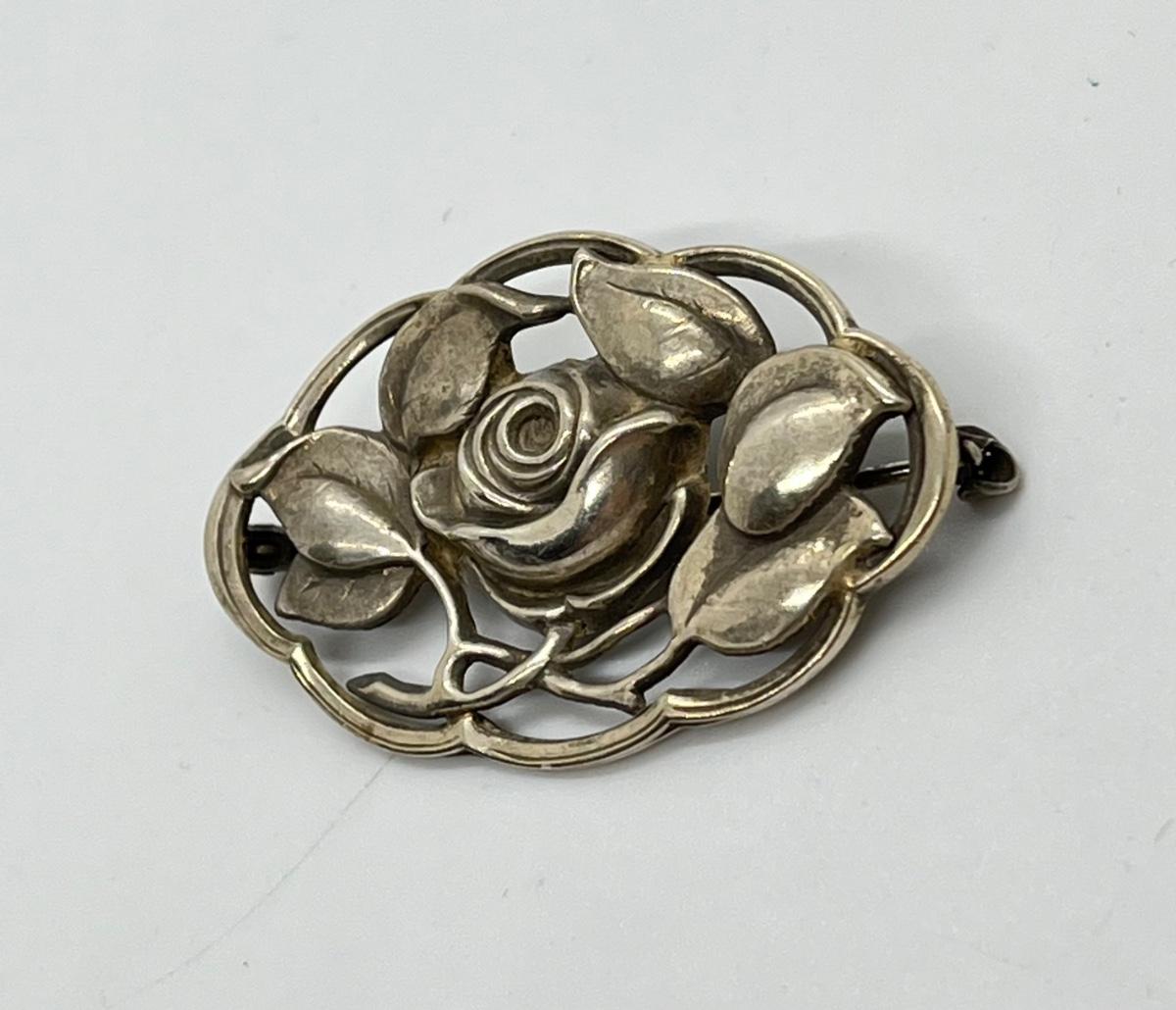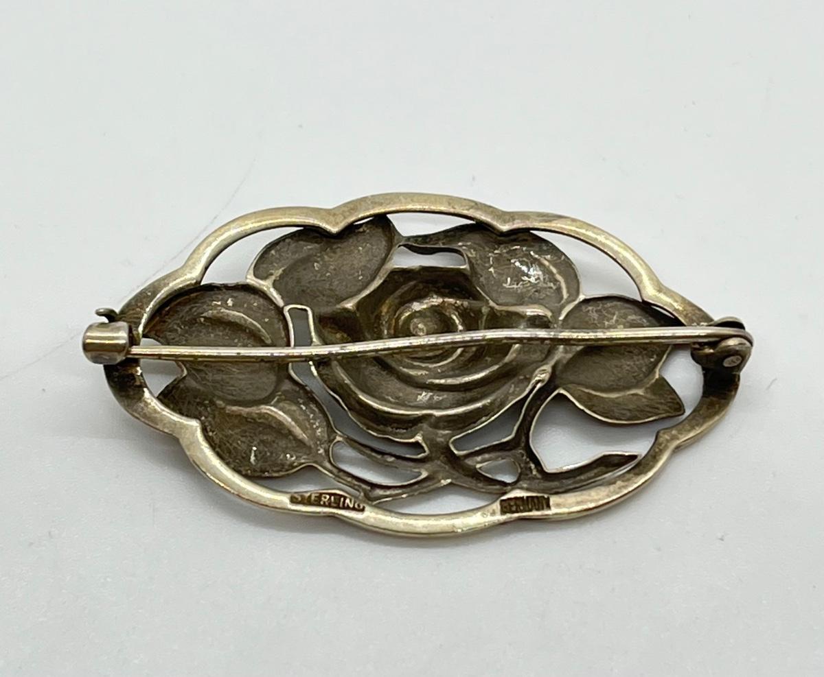LOT 48: Sterling Silver Pins - Watch Holder, Rose Leaf Made in Germany & Antique Bar Pin Inlaid with Pink Agate