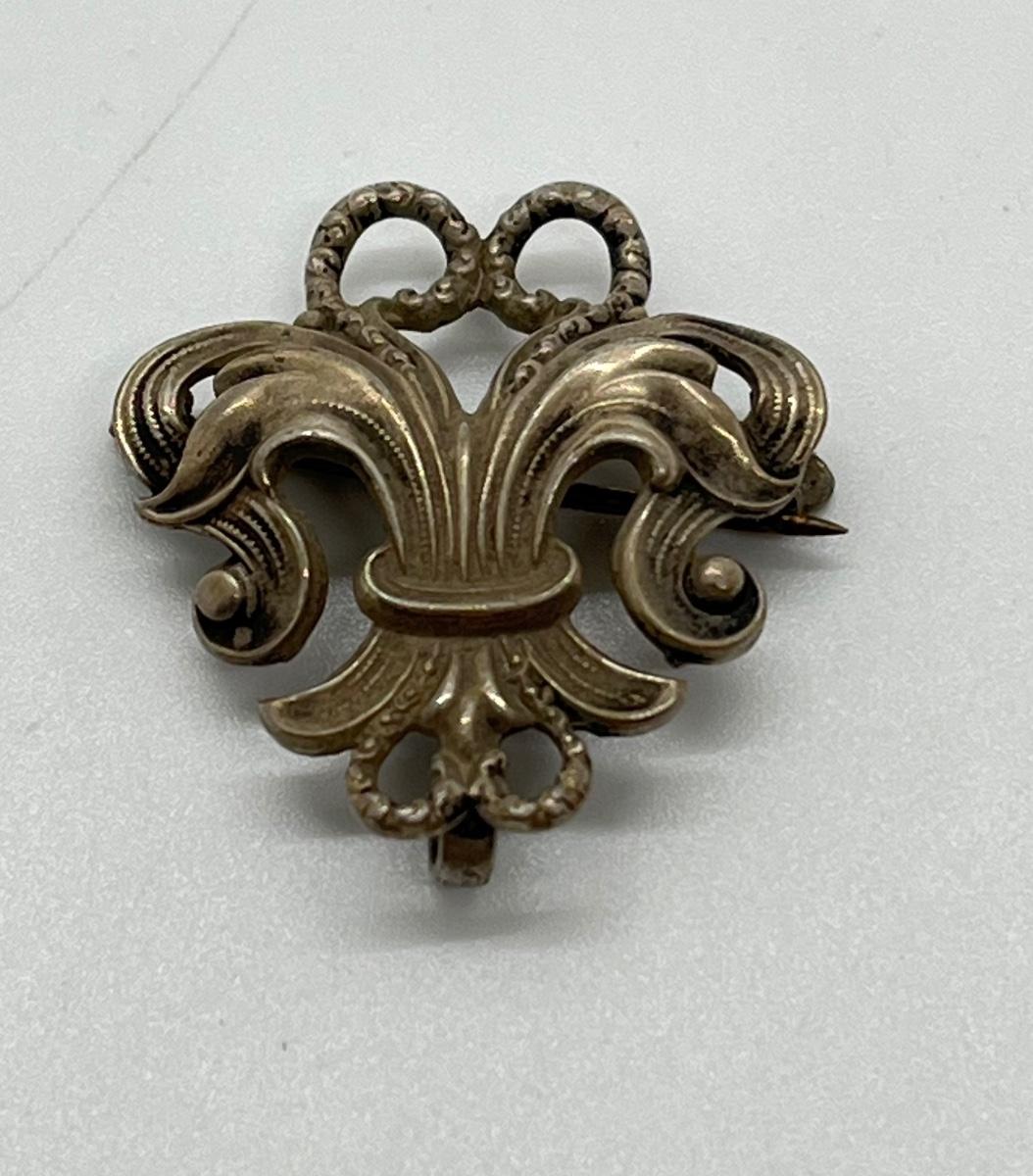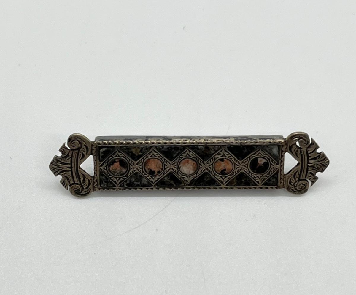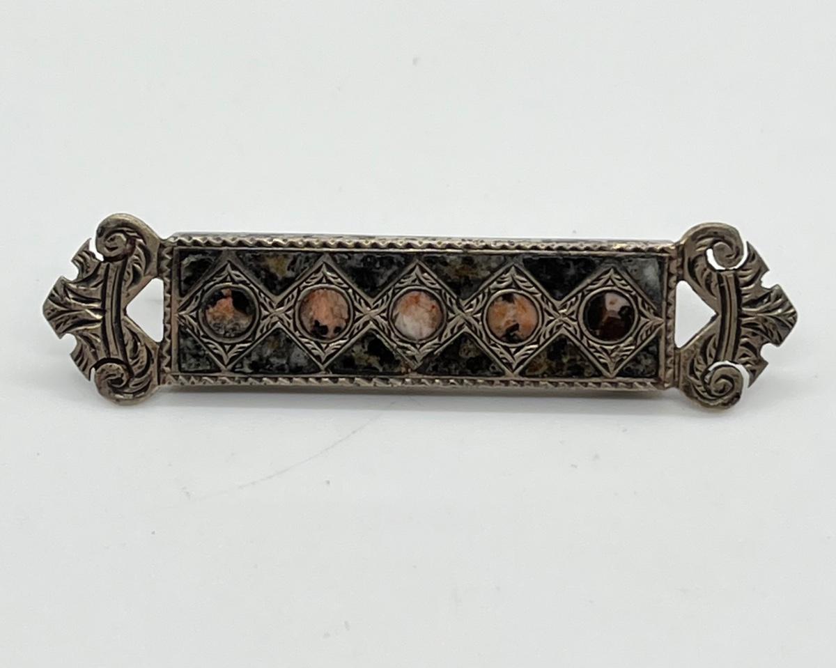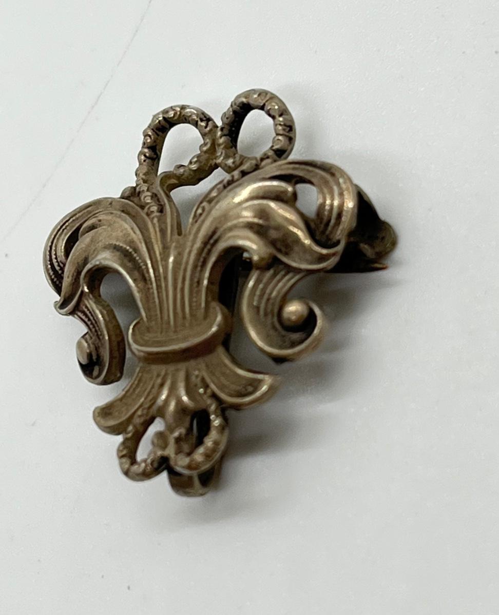 LOT 48: Sterling Silver Pins - Watch Holder, Rose Leaf Made in Germany & Antique Bar Pin Inlaid with Pink Agate