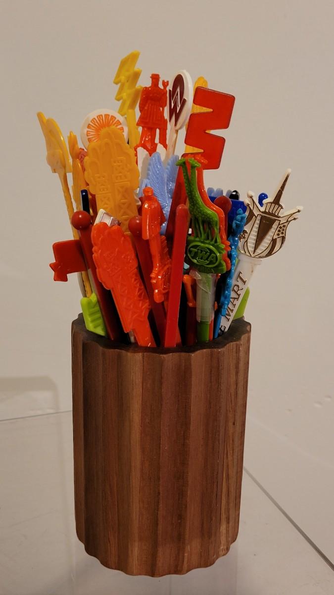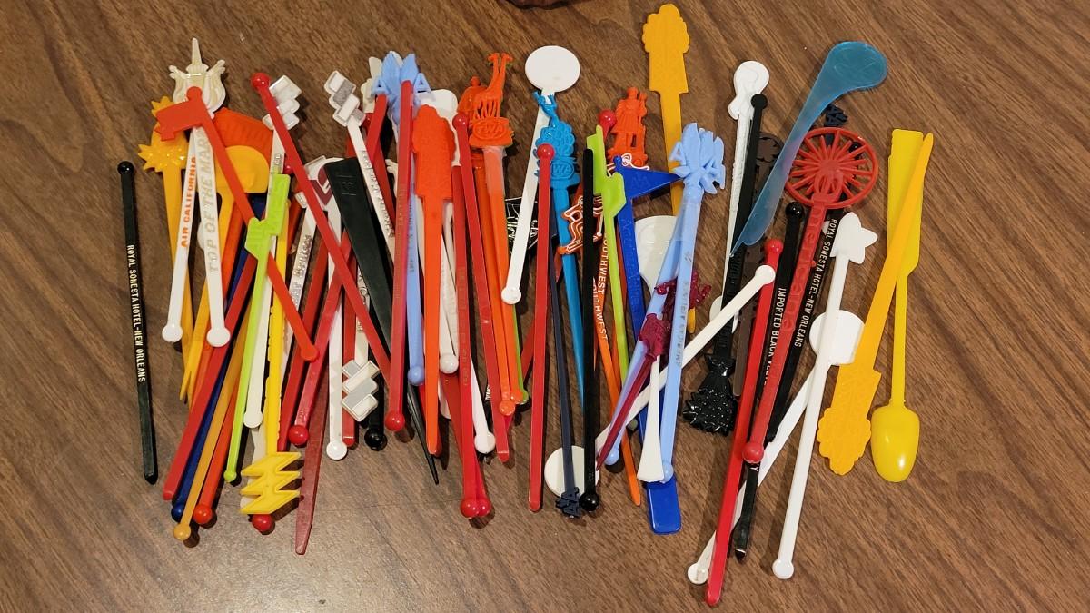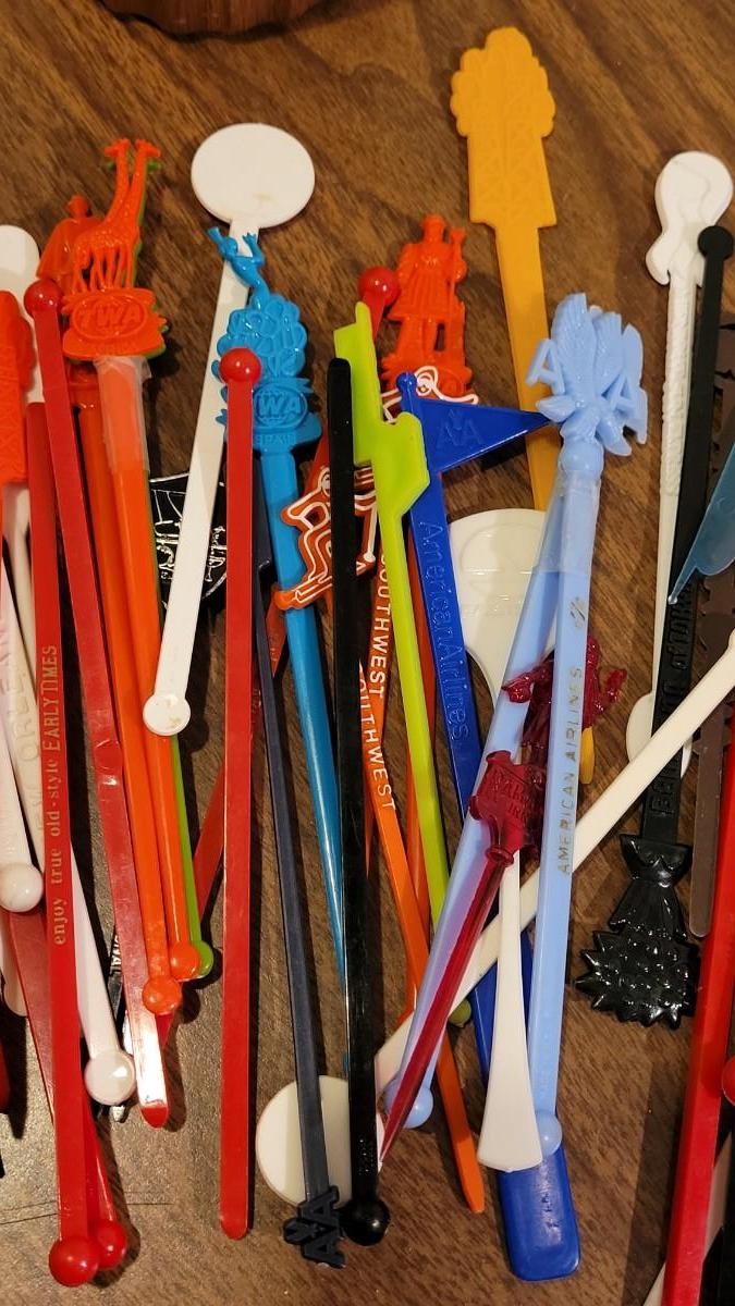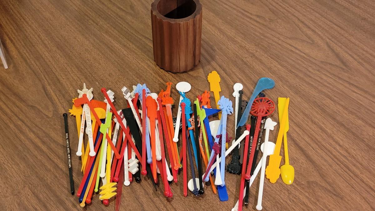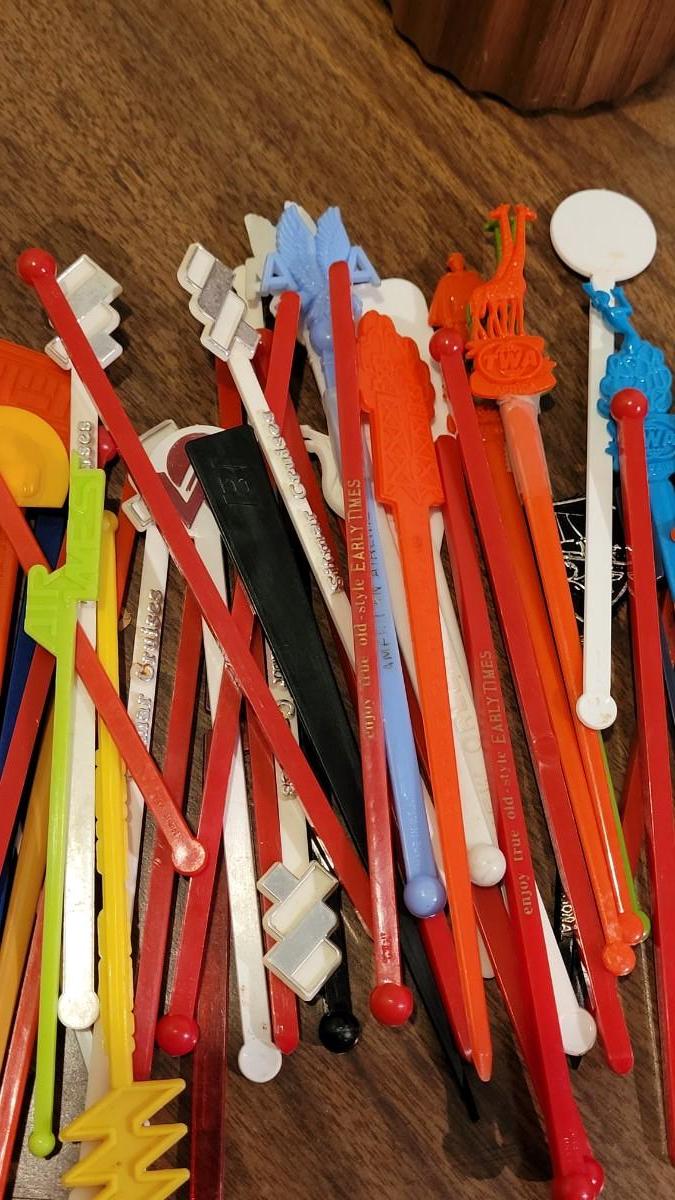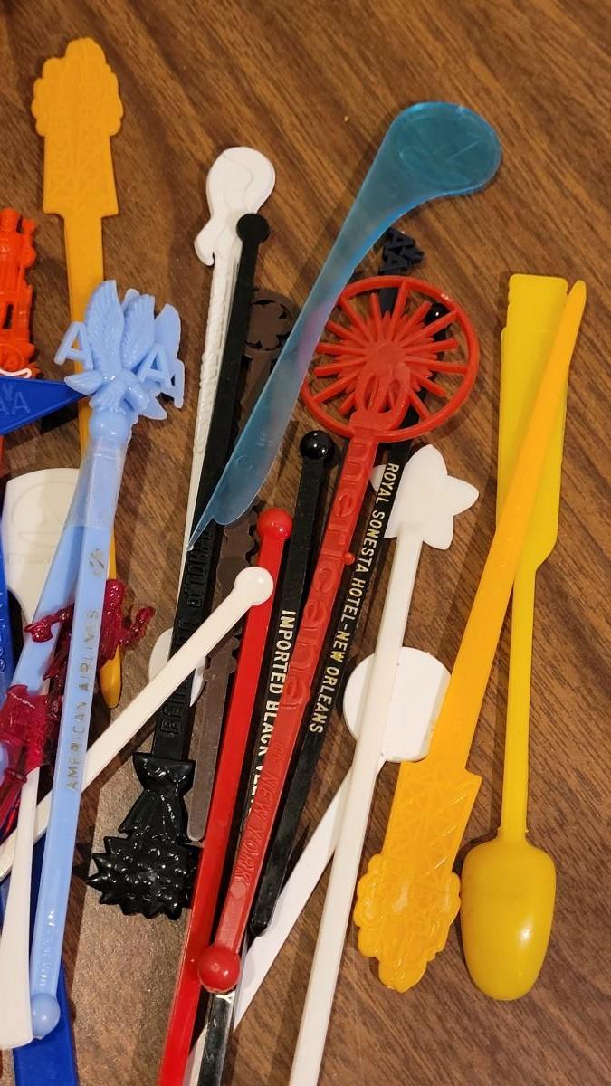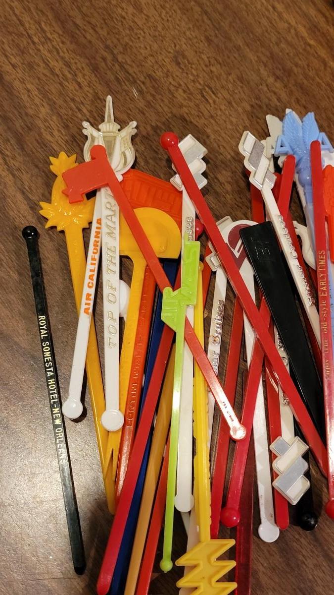 Lot 48: Vintage Teak Cup with Vintage Airline Swizzle Sticks