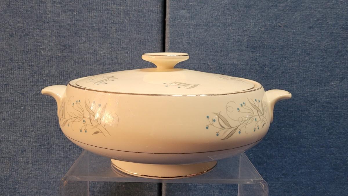 Blue flowers painted on the covered dish