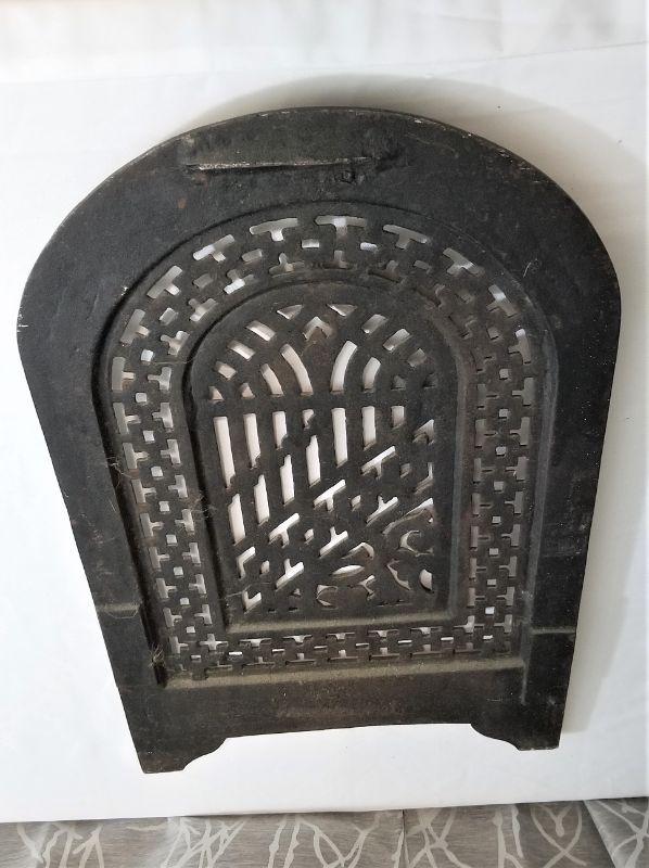 Nice old cast iron fireplace grate for a coal-burning fireplace. Good condition. Measures 23" tall and 14" wide.