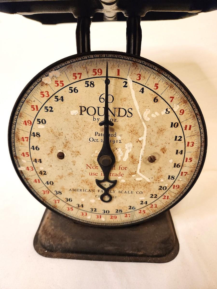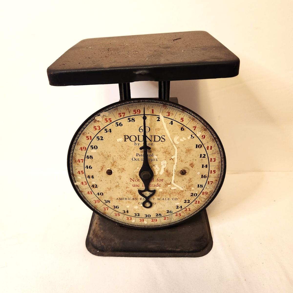 Nice Antique Scale - patented 1912 - American Family Scale Company, weighs up to 60 pounds, vintage condition, 10.5" tall.