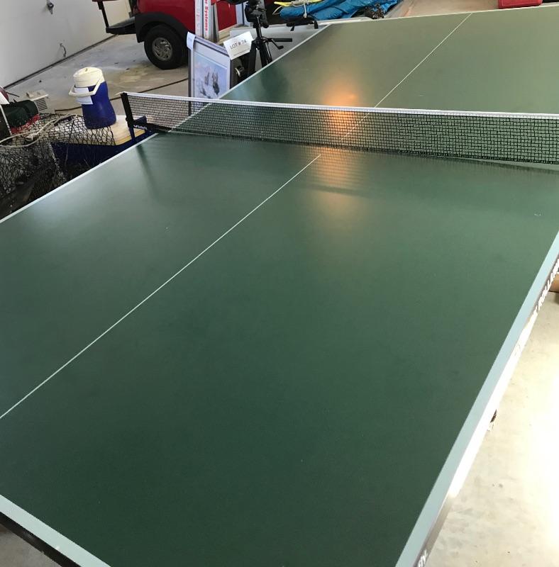 DURABLE OUTDOOR PING PONG TABLE: High quality all weather ping pong table contains a regulation size 9x5 synthetic laminate top with a rust proof frame on with rotating wheels