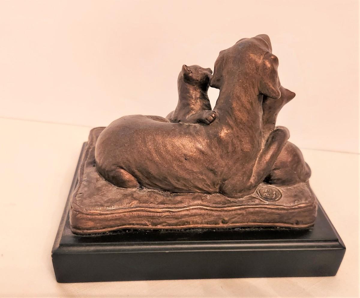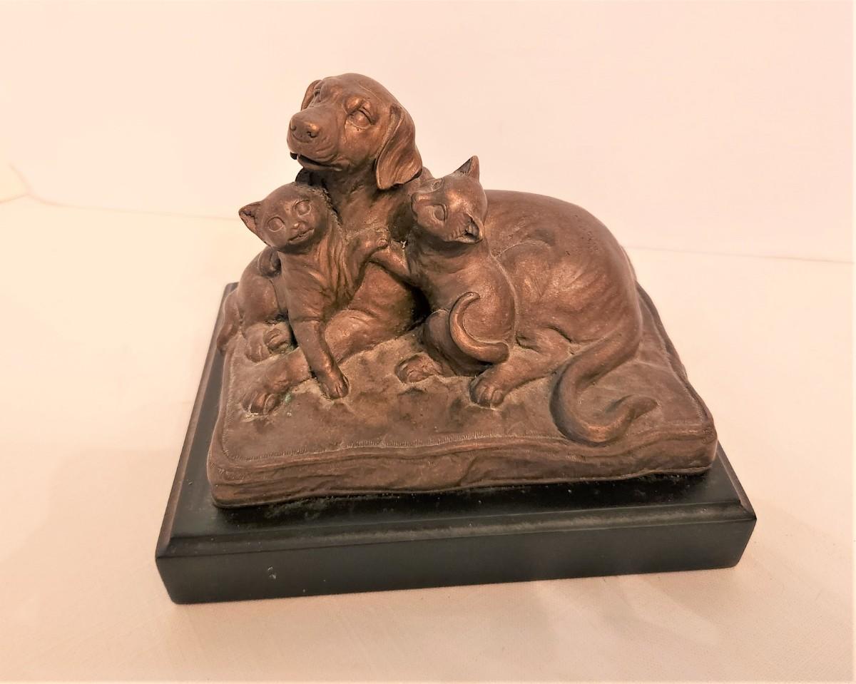 Lot #48 Contemporary Dog with Cats Sculpture on Laminated Base