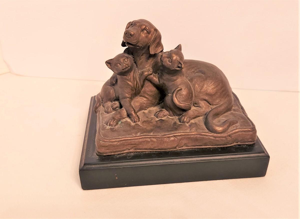 Lot #48  Contemporary Dog with Cats Sculpture on Laminated Base
