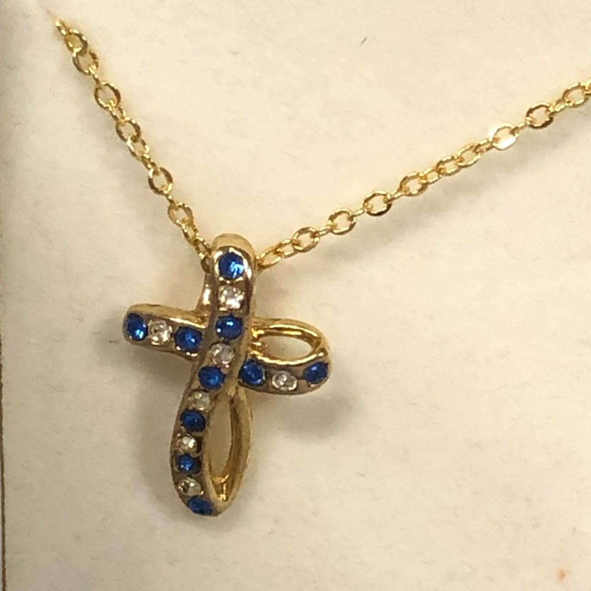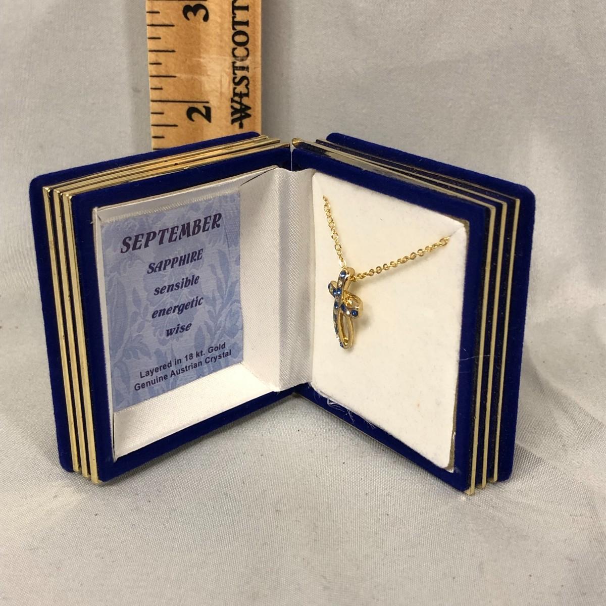 This comes in a nice box and the necklace and cross are layered in 18 kt gold and embellished with Austrian crystals. September is just around the corner!