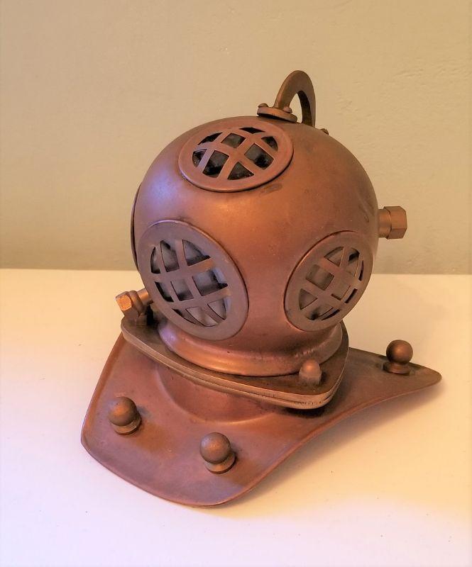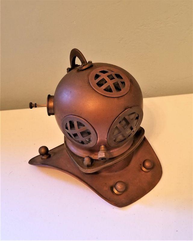 Miniature Diver's Helmet - Decorative piece - copper - 7" tall and 8" wide across the back. No condition issues.