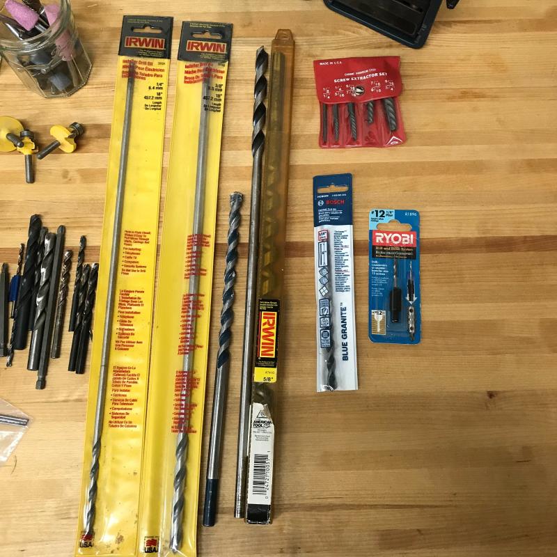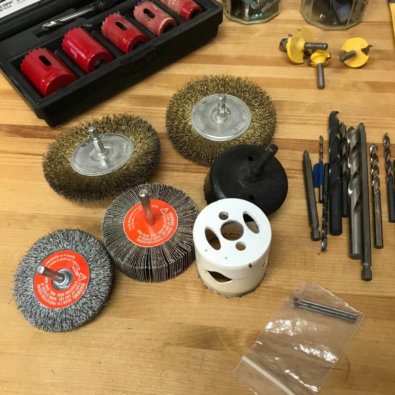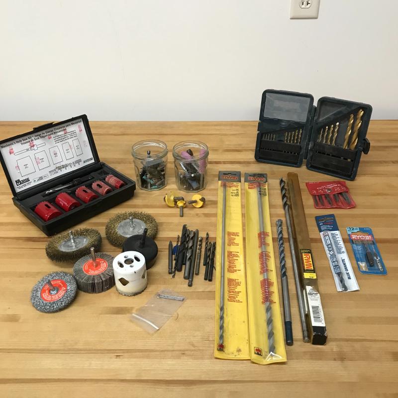 Morse hole saw kit, Bosch brass bits kit, large and small bits and much more. Lot is available for local pick up in Asheville. NC only.