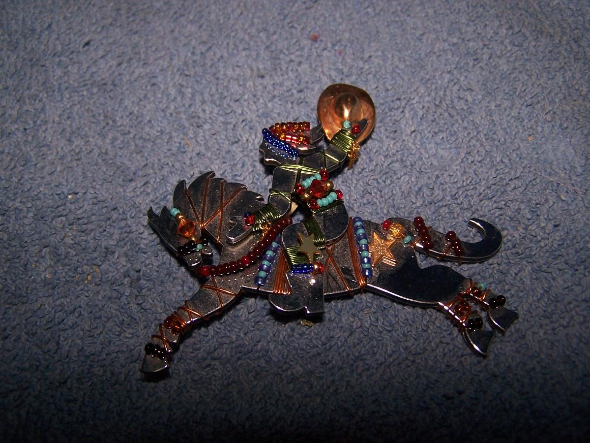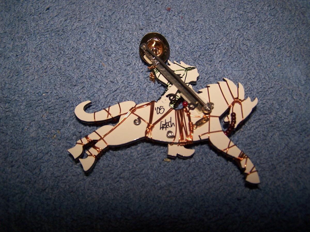 THIS IS A FABULOUS '05 COLLECTIBLE LIZTECH COWGIRL ARTIST PIN. MARKED..3'' LONG.. SLIGHT WEAR..