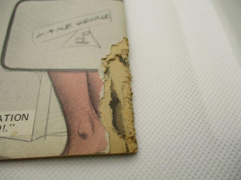 There is damage to the back, bottom right corner. See pictures for details and condition.