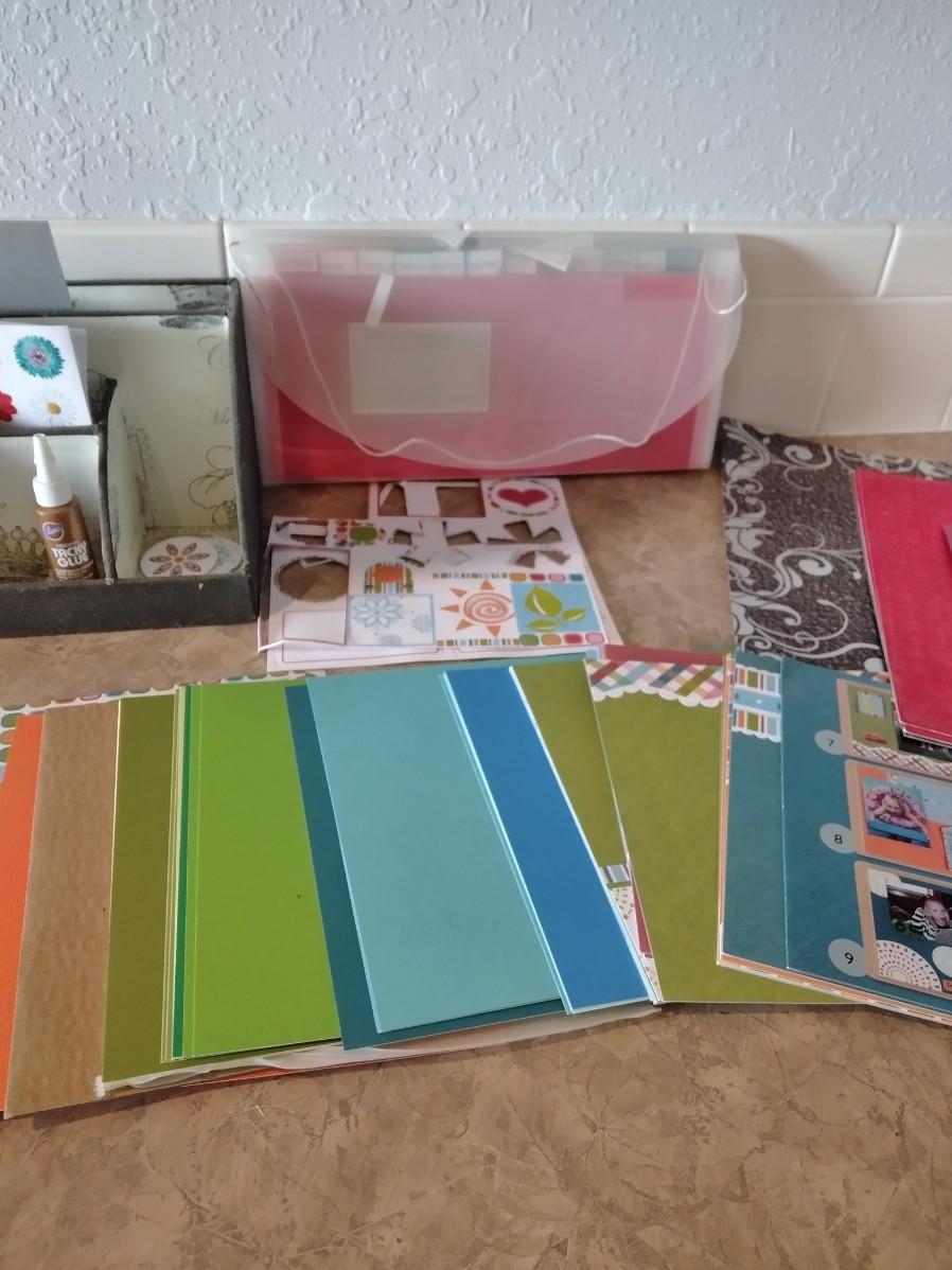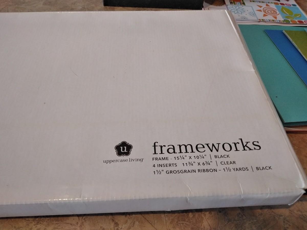 FRAMEWORKS FRAME MAKER, SMALLER PIECES OF SCRAPBOOK PAPER, STICKERS IN ORGANIZER POUCH, AND MORE