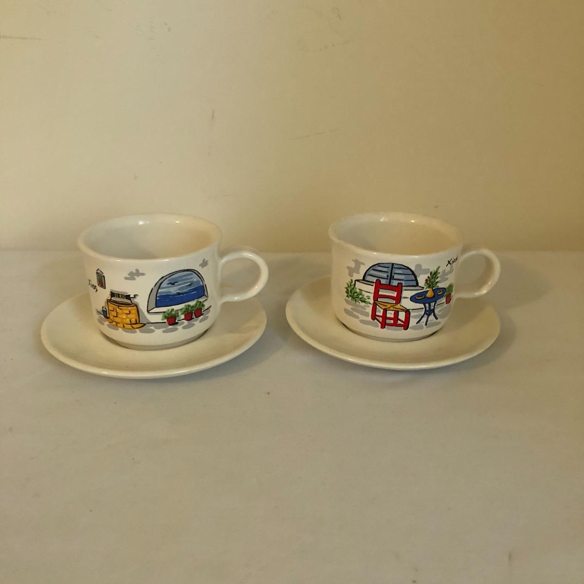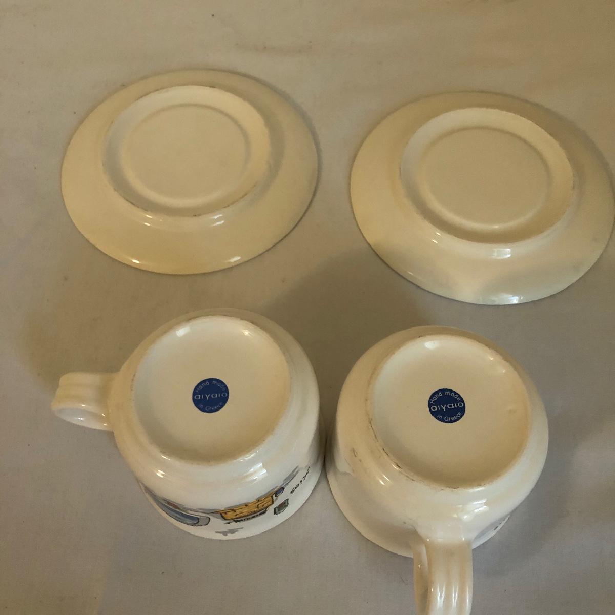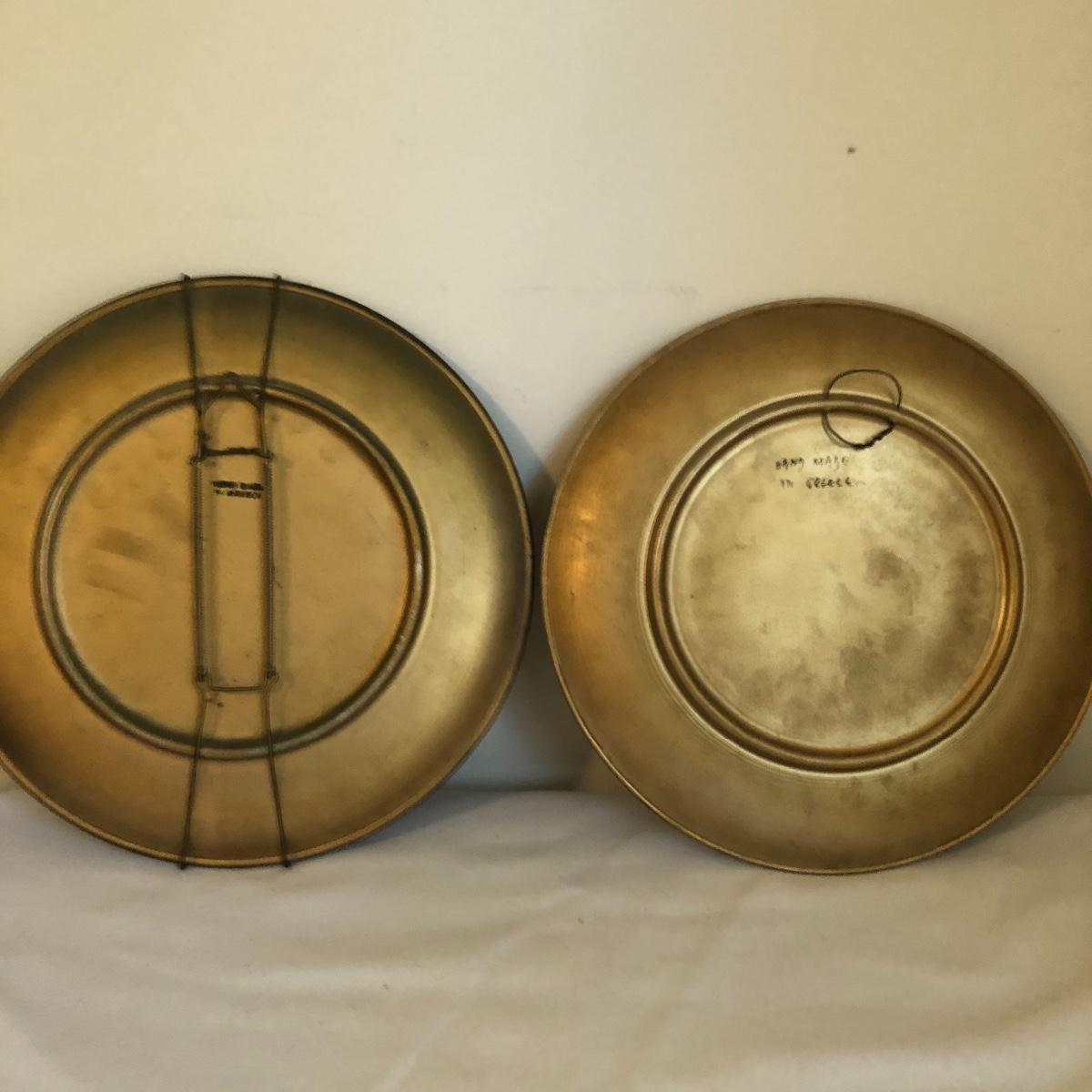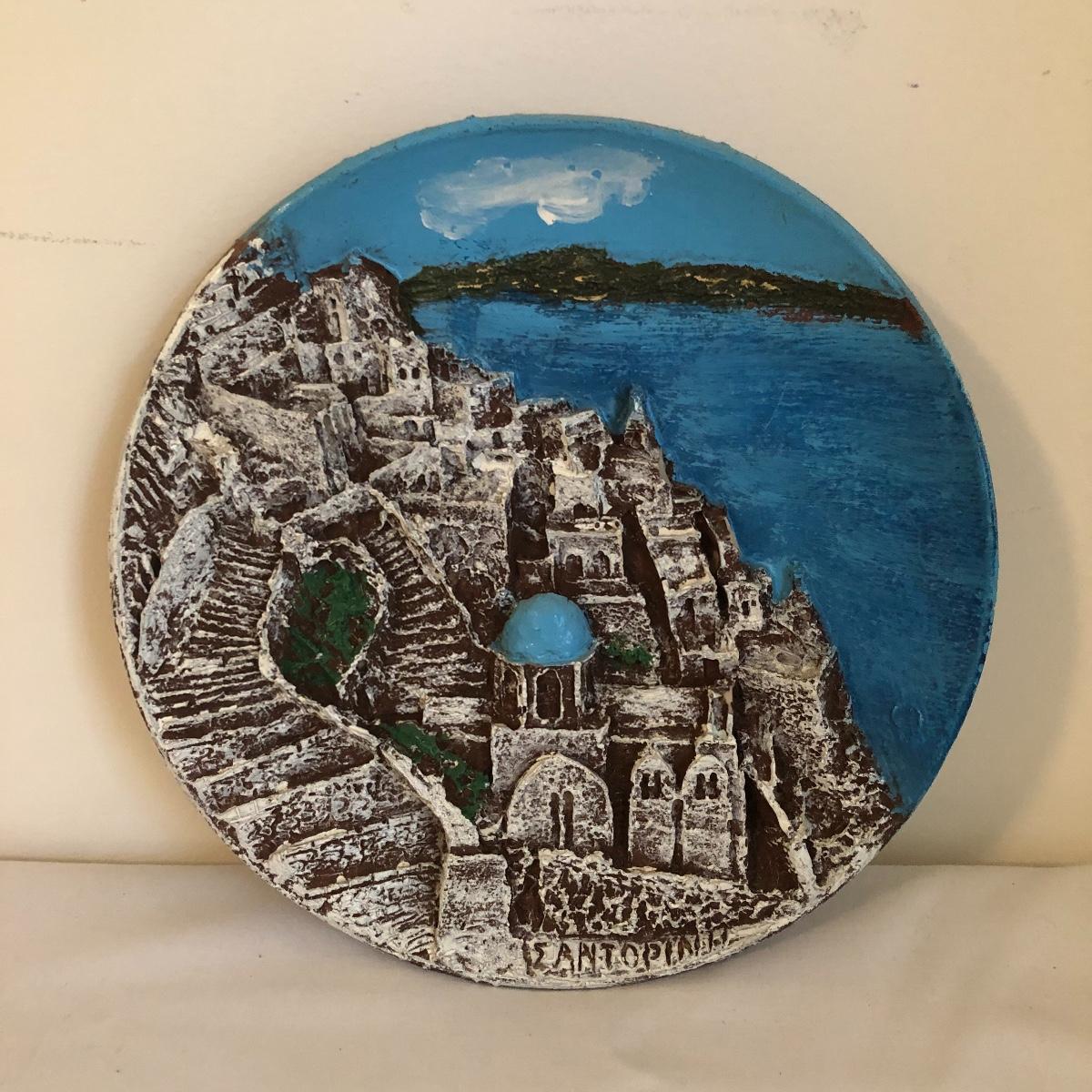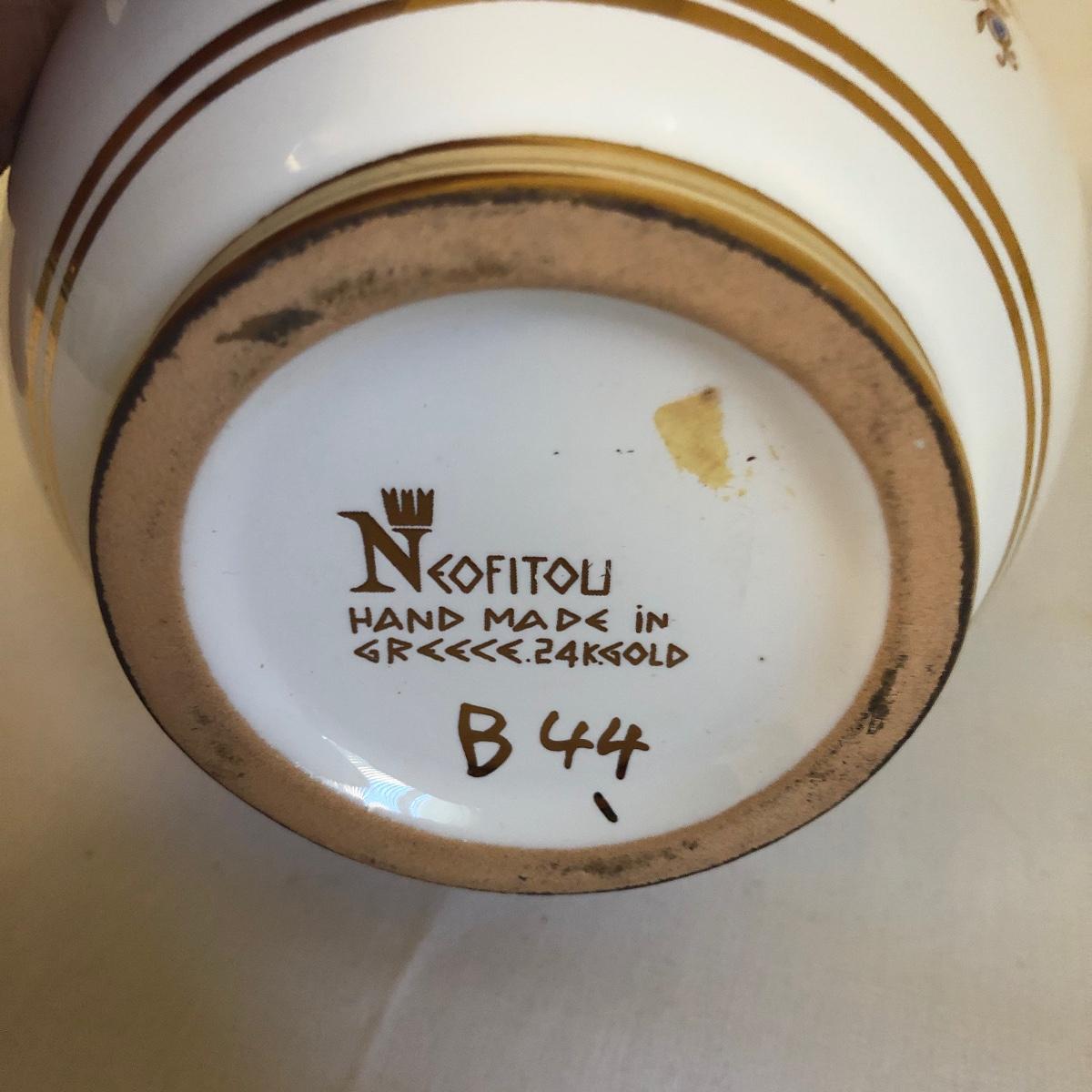 A nice find for the Greek lover in your life. Lot includes framed art, plaque with what appears to be a copper mounted piece, two mugs and saucers, three plates with classic buildings, Neofitou vase with 24k gold and more. Largest frame measures 12.75” x 15.75”.