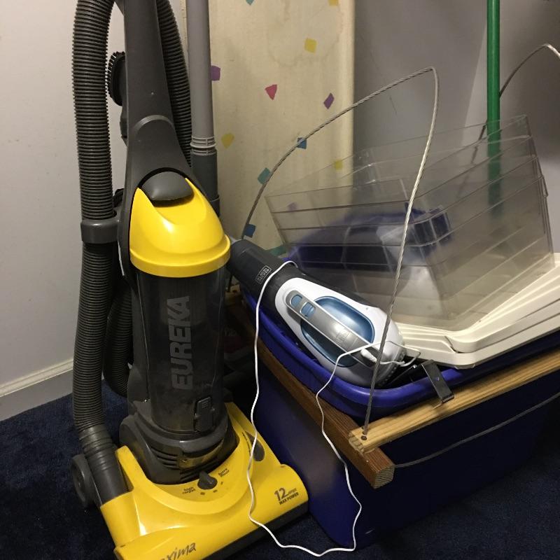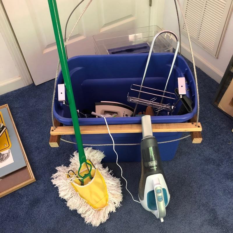Lots of useful items in this lot for your household needs. A chrome towel rack and shower caddy, a Black & Decker hand vacuum, Eureka Maxima vacuum, ironing board, Sunbeam iron, storage boxes, and much more, see images.