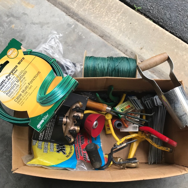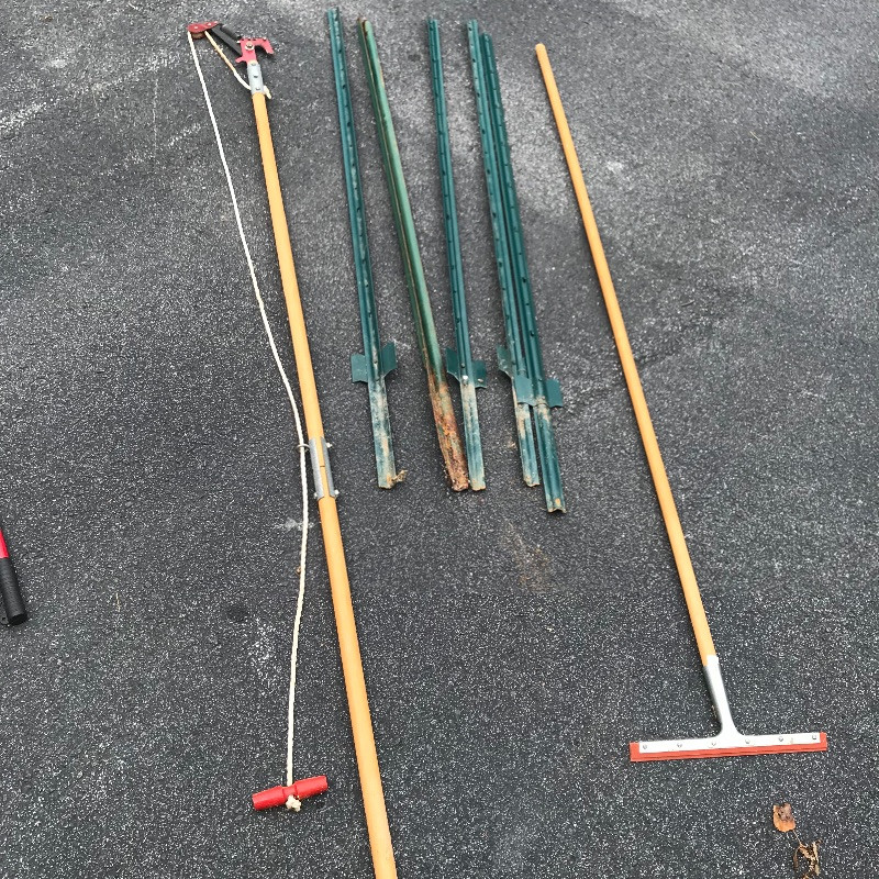 Stay ahead of the game and keep your yard just how you want it with this large collection of yard tools with rakes, hoes, claws and even a post hole digger! A couple of bags of fine sand, fencing and multi-purpose wire. Lot also includes a 12v Water Puppy Priming Pump model 6360-1001, sprinklers and a tree limb cutter. Too many yard saving tools to mention them all, see photos for entire lot inventory.