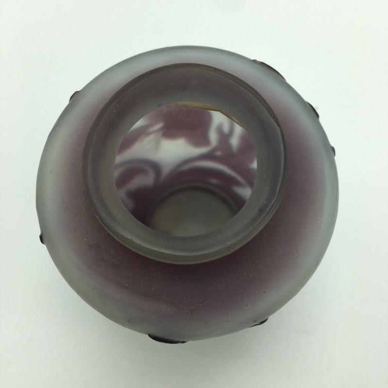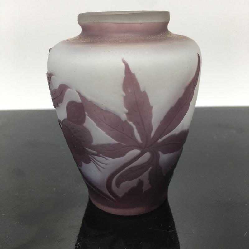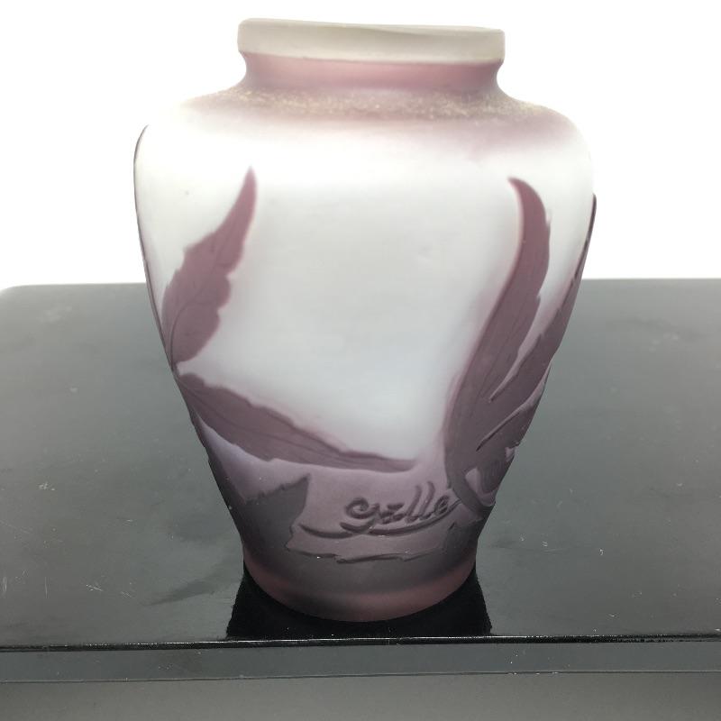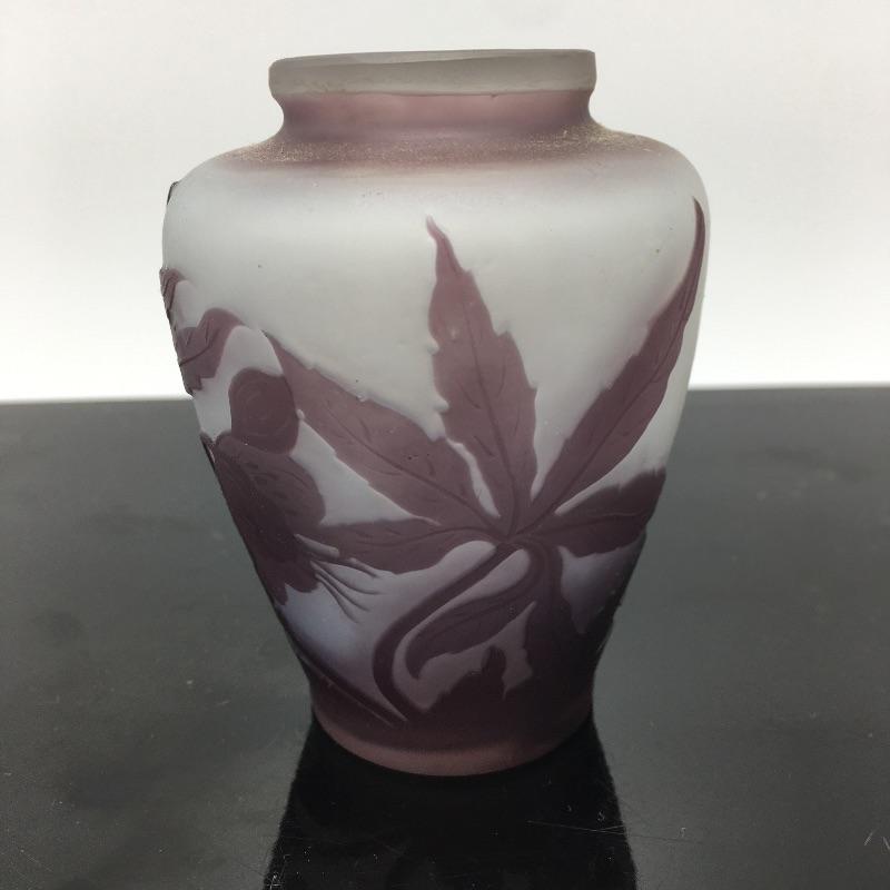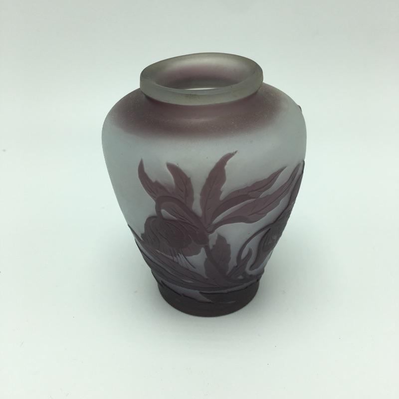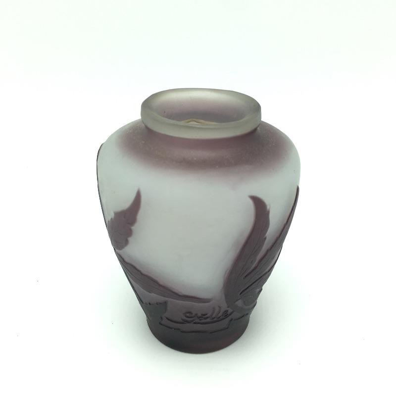 Small Émile Gallé acid etched vase. Émile Gallé was a French artist and is considered to be one of the major forces in the French Art Nouveau movement. Own a classic piece of art from one of the premier artists of the French Art Noveau movement. Vase measures 3.5” tall with a 2.75”D