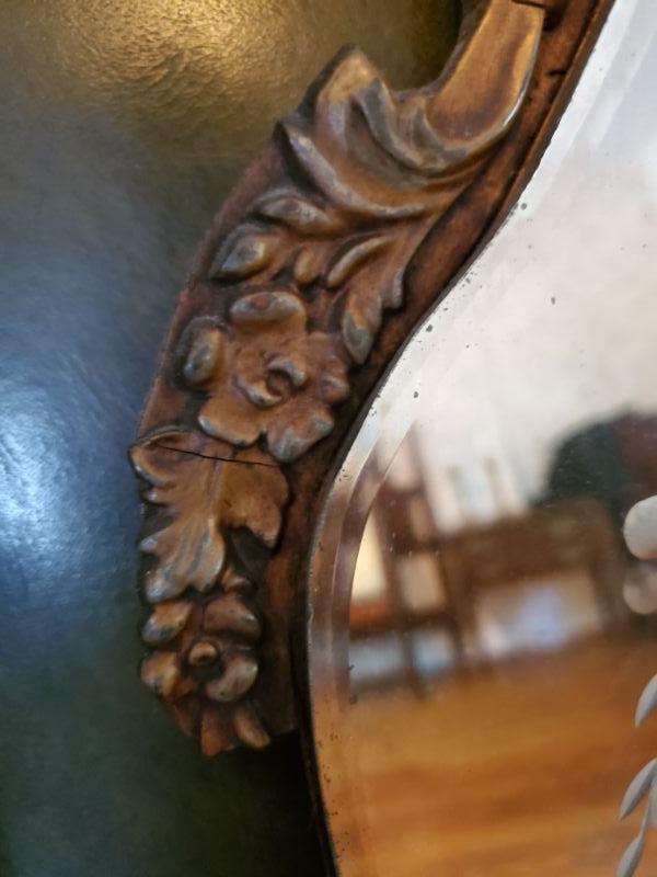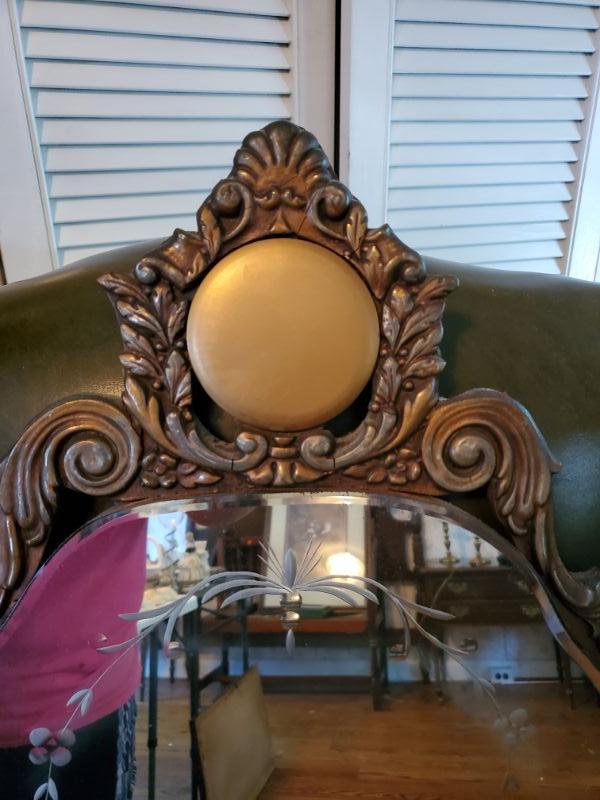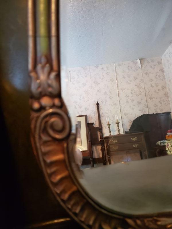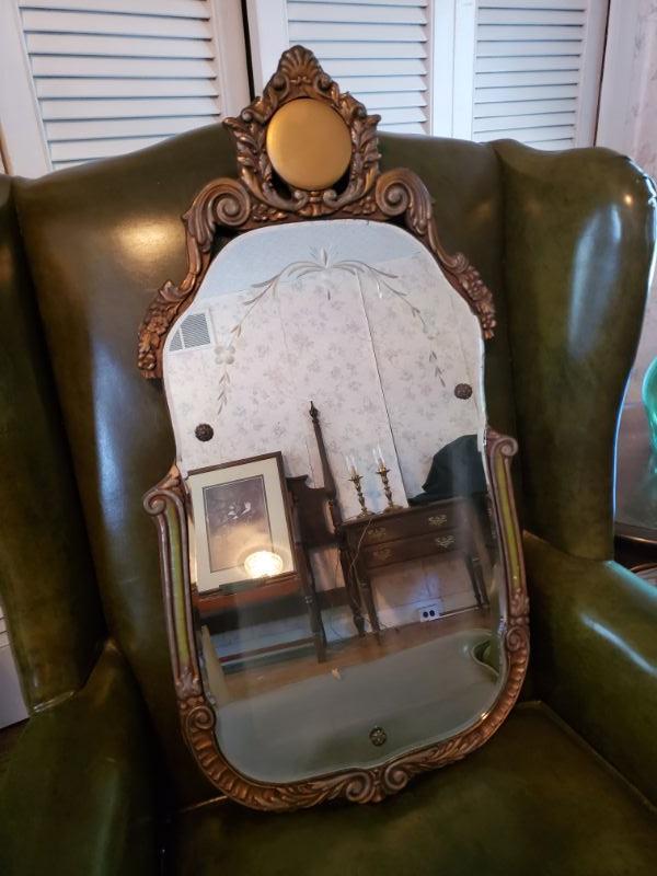 Vintage mirror with beautiful frame. Wear noted. 32x16.5