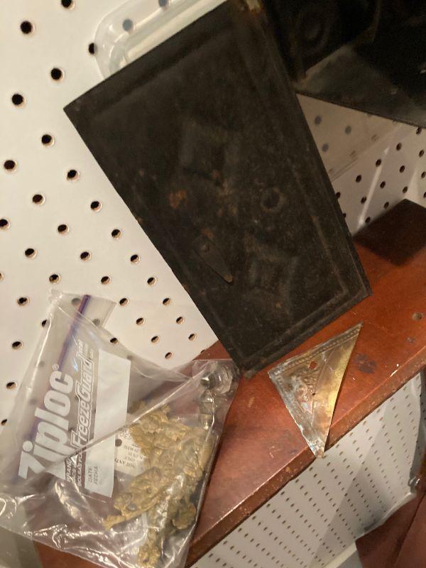 15" long. Detached door. Broken brass pieces. We have some of the pieces. Unknown condition.