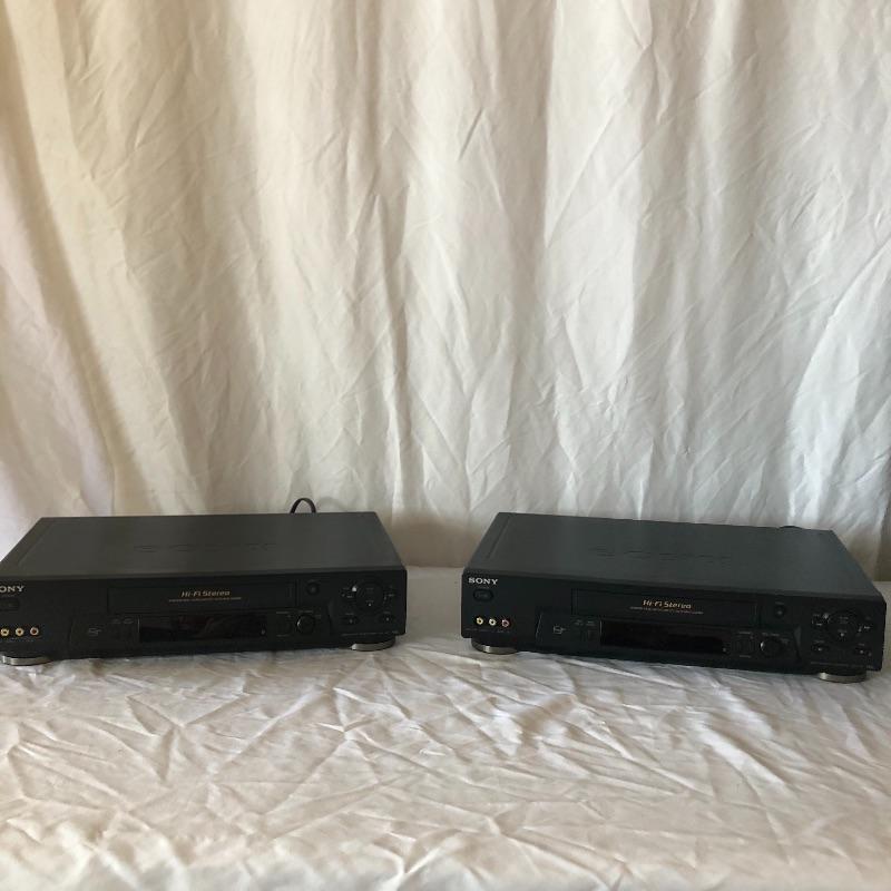 Not one but two Sony video cassette recorders here! These Hi-Fi stereo’s are model SLV-N71. Both powered on when tested and come with remotes, manuals, etc.
