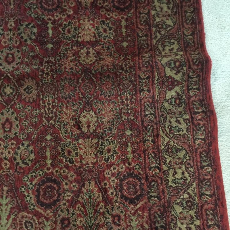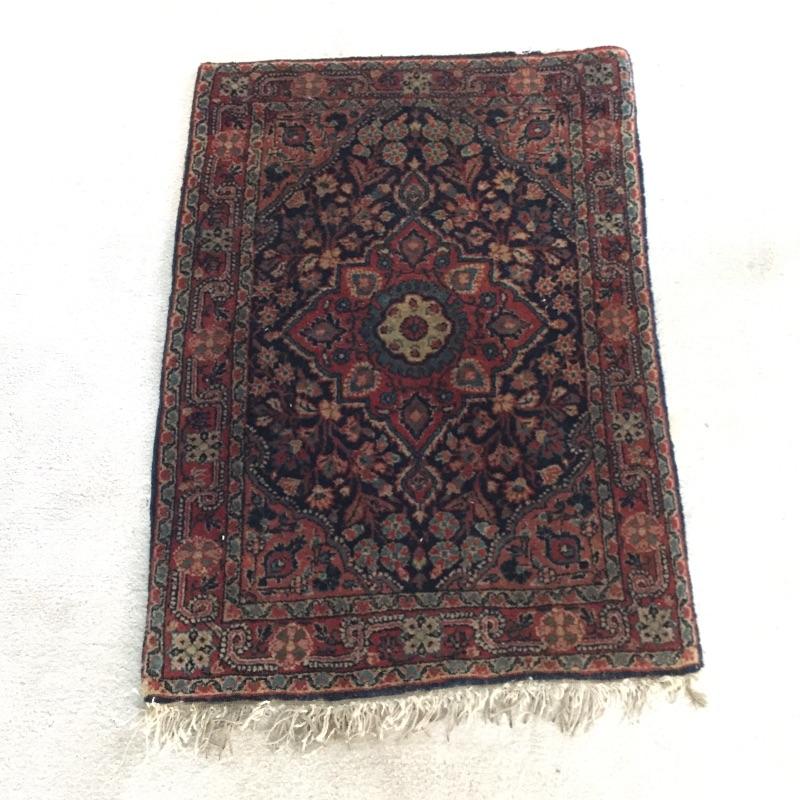 Good looking pair of rugs. Smaller rug has tag that says made in Iran and measures 26” x 37”. Larger rug measures 39” x 62” and has small stain - see pictures.