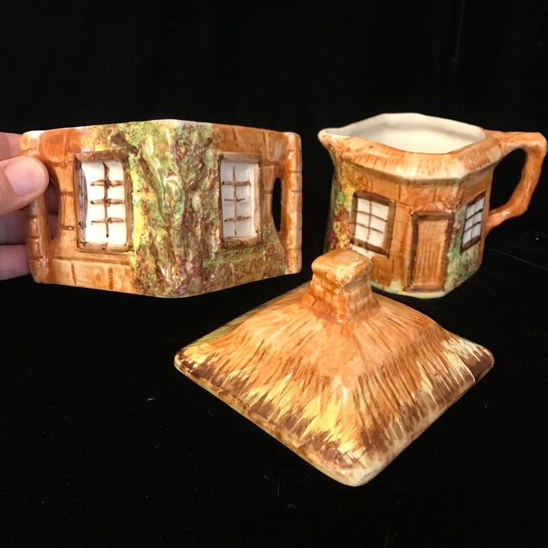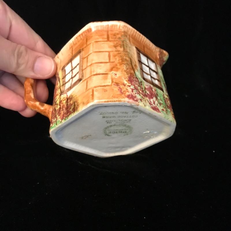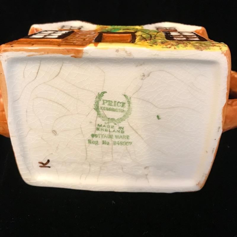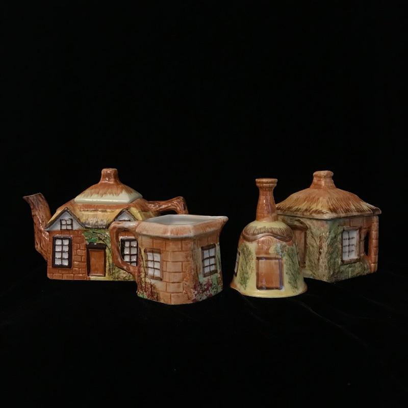 This quaint and perfectly charming tea set and bell is made by Price of Kensington in England. The collection is Cottage Ware and includes a teapot, lidded sugar bowl, creamer and bell. There is some crazing found throughout this collection. Teapot measures approximately 8” x 3.5” x 4”. Shipping available.