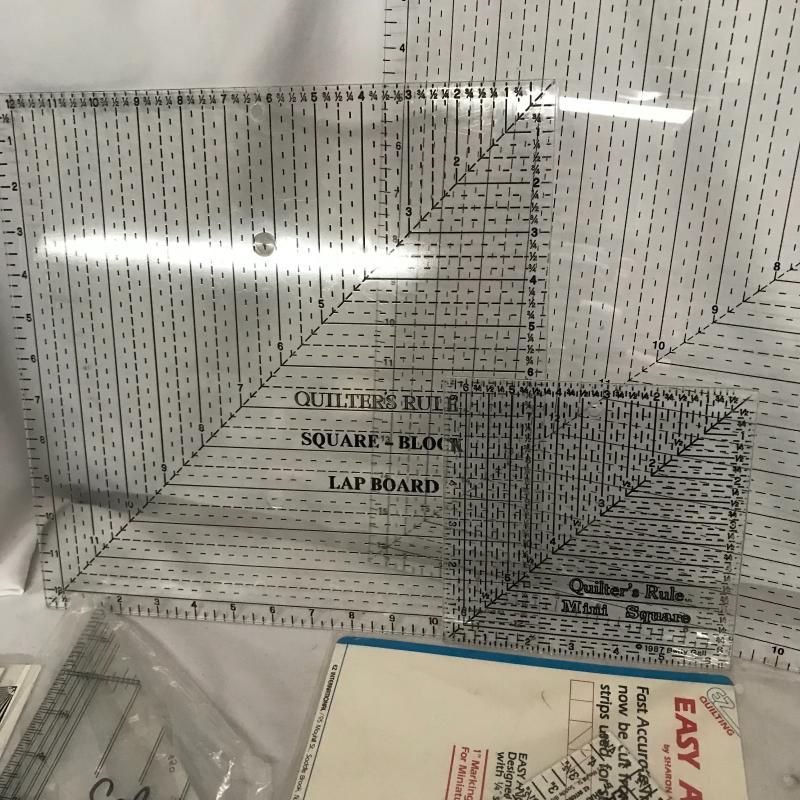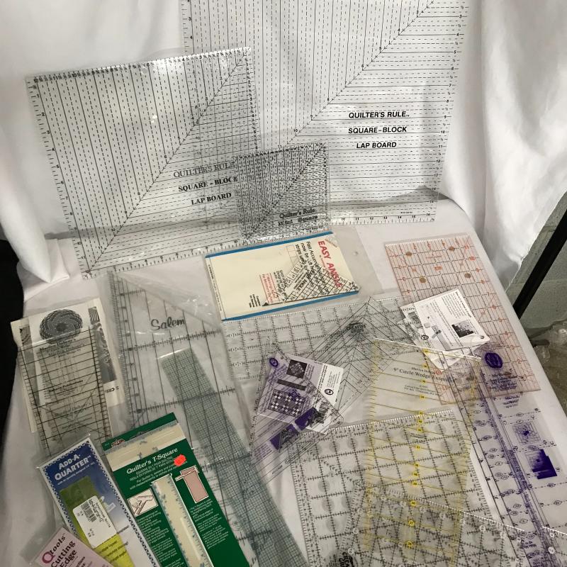 Quilting rulers of many kinds. Largest square is 16”. See pics. Shipping available.
