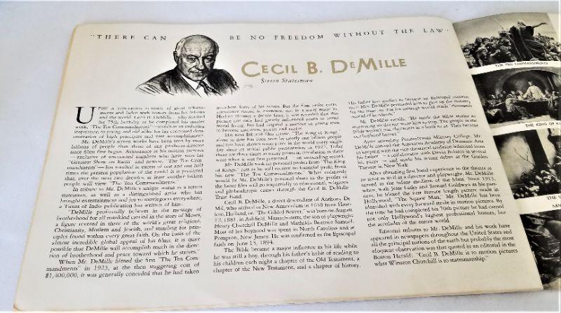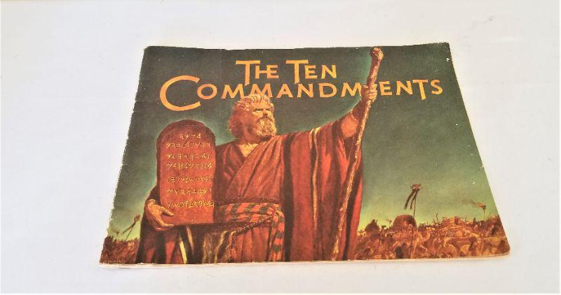 Sold in theatres where The Ten Commandments was playing - nice color program with the storyline and photos of the cast, along with a letter from Cecil B. DeMille. Good condition. 17.5" x 9.5"