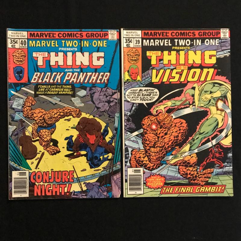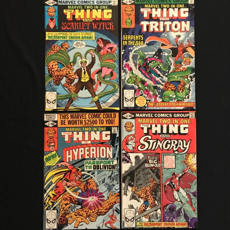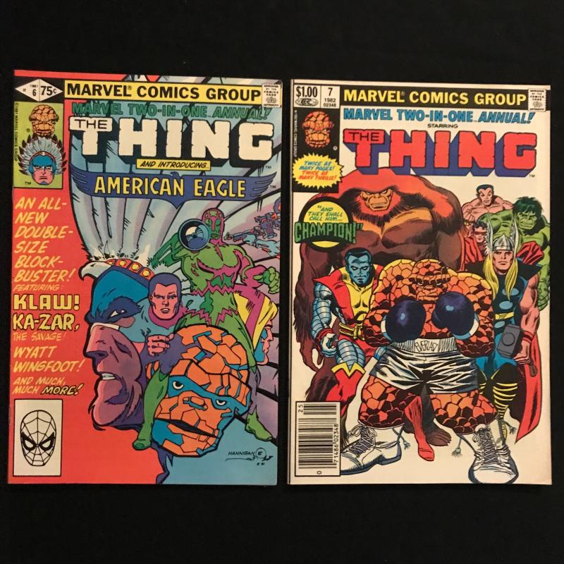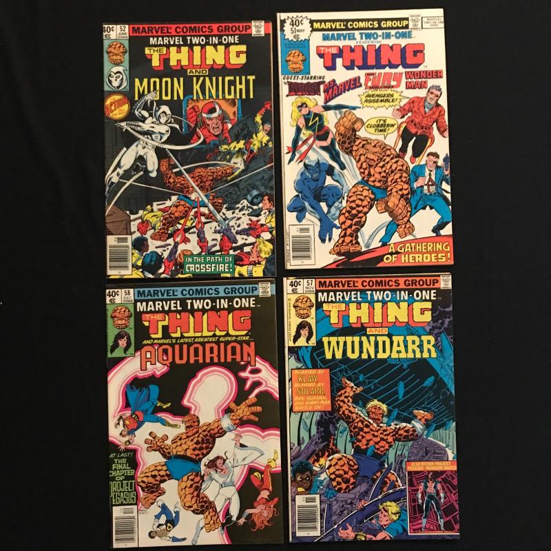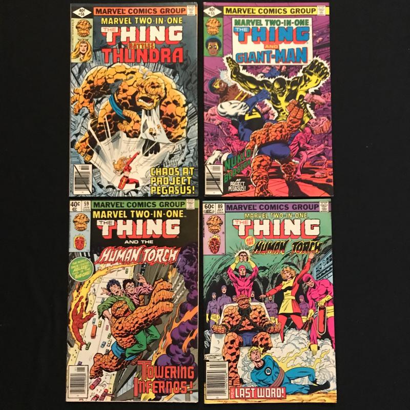 55 issues of "The Thing" by Marvel. Includes many issues of "Marvel Two-In-One." Includes Vol. 1, No. 6, December 1983 of "The Thing." Also includes two versions of Vol.1, No.70, December 1980 issue of "Marvel Two-in-One." Several annuals included. See photos for details. Fits in ONE Priority box or local pick up in Asheville, NC.