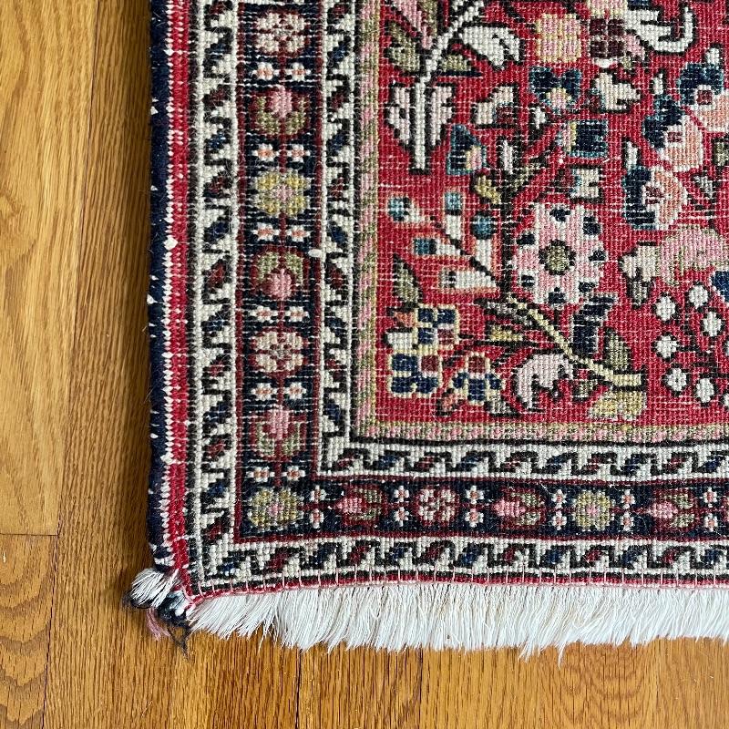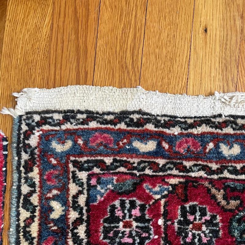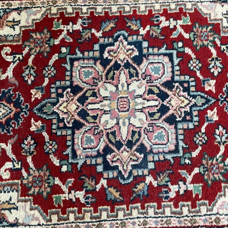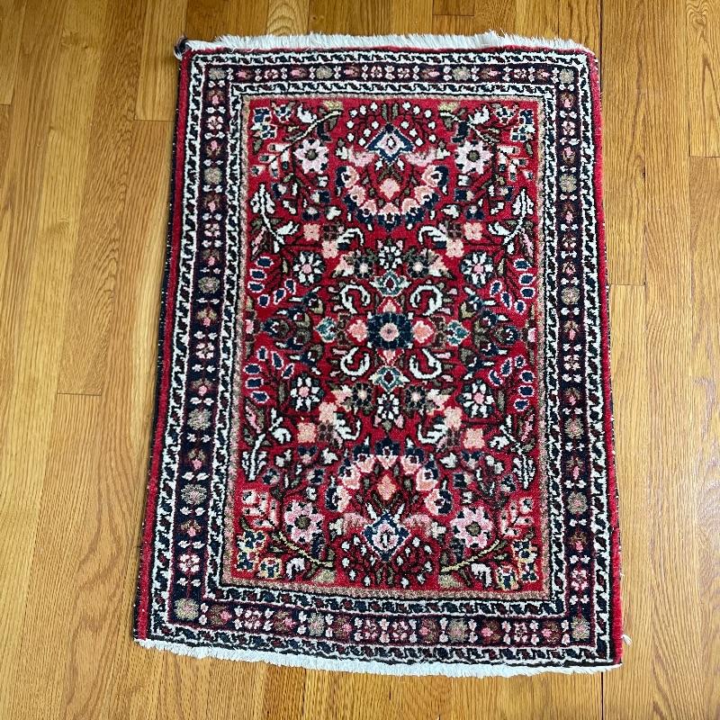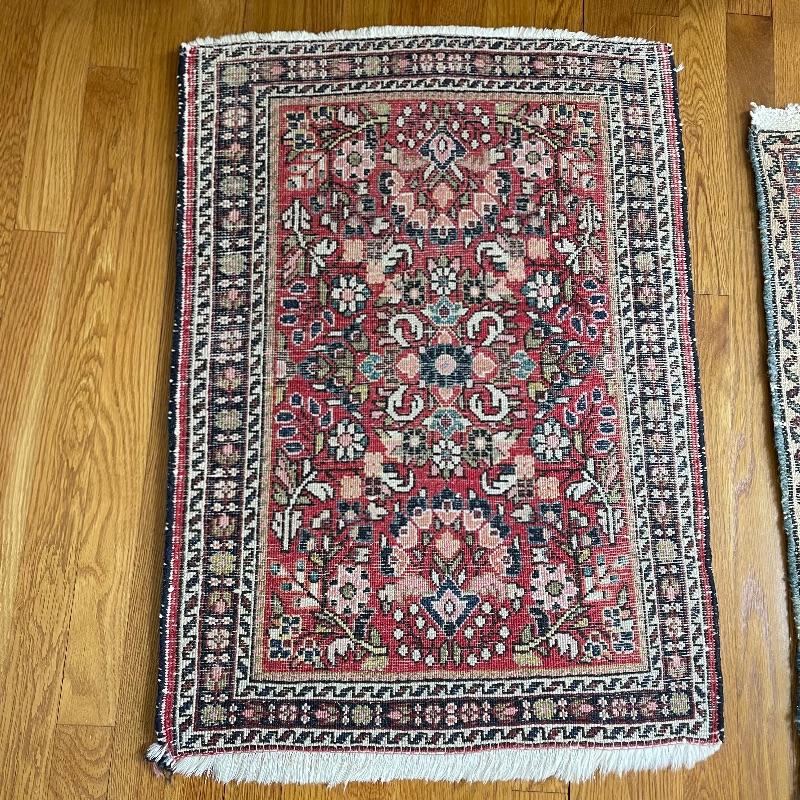 You’ll see Mrs. Olson has a fine taste and loved her rugs! Here’s three more (many are found in lots before and after this one)! These three quality rugs are soft to the touch and compliment each other nicely. The rugs vary is size only slightly. The two photographed vertically are about 22.5” x 30” and the larger one photographed horizontally is about 36” x 23.5”. See photos. Shipping available.