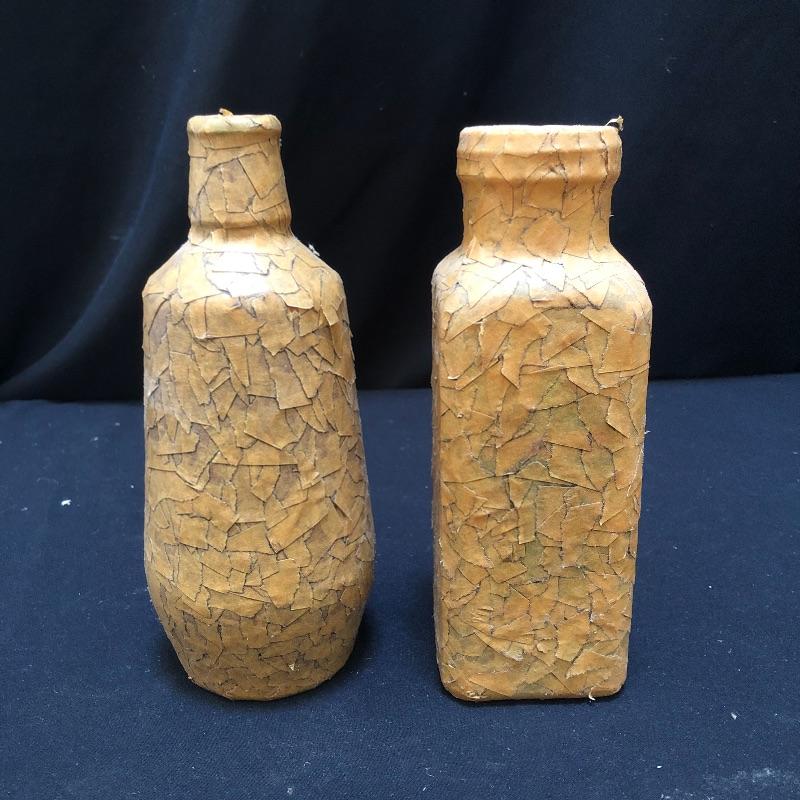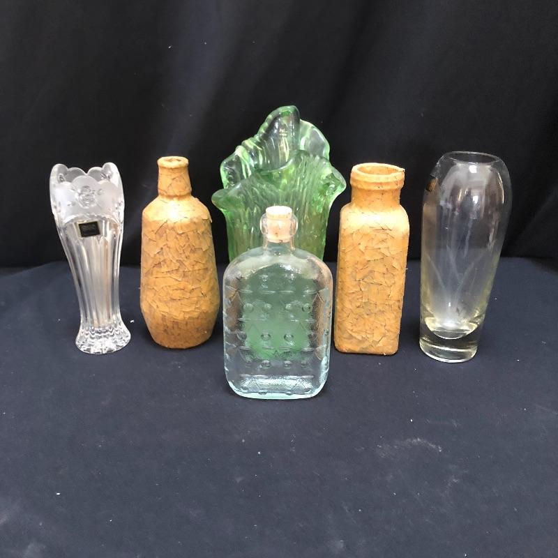Have a great way to display your flowers with these lovely vases. Lot includes Oneida crystal vase, Toscany vase, Muuria Finland vase and a bottle with cork stopper and two bottles with what appears to be decoupage on the outside. Largest vase measures 5”D x 8.5” tall.
