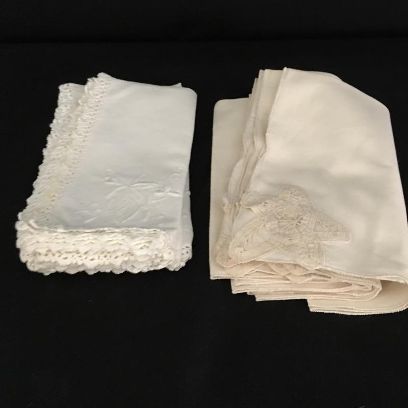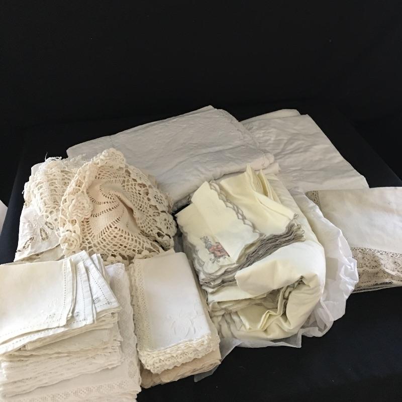 Vintage linens and tablecloths in a variety of classy styles. Collection includes two tablecloths, a selection of doilies, and plenty of napkins in a variety of styles and colors, perfect for the next time we can get together with our friends.