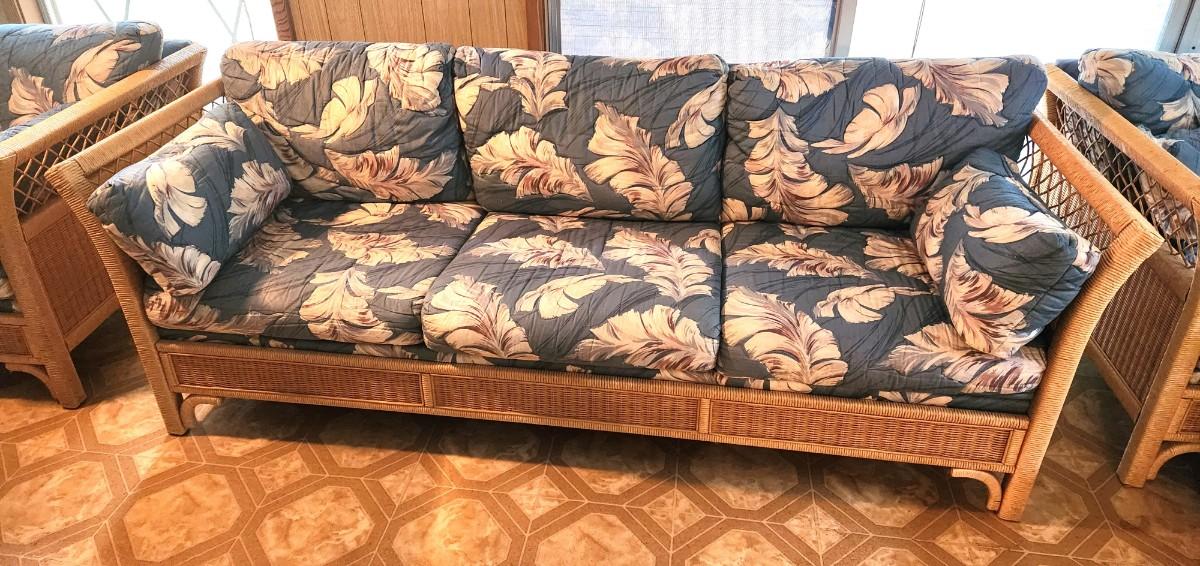 Lot #48 Vintage Rattan Sofa - floral pattern