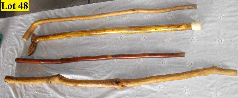 4 Wooden Walking Sticks Range from 36"-44" in length