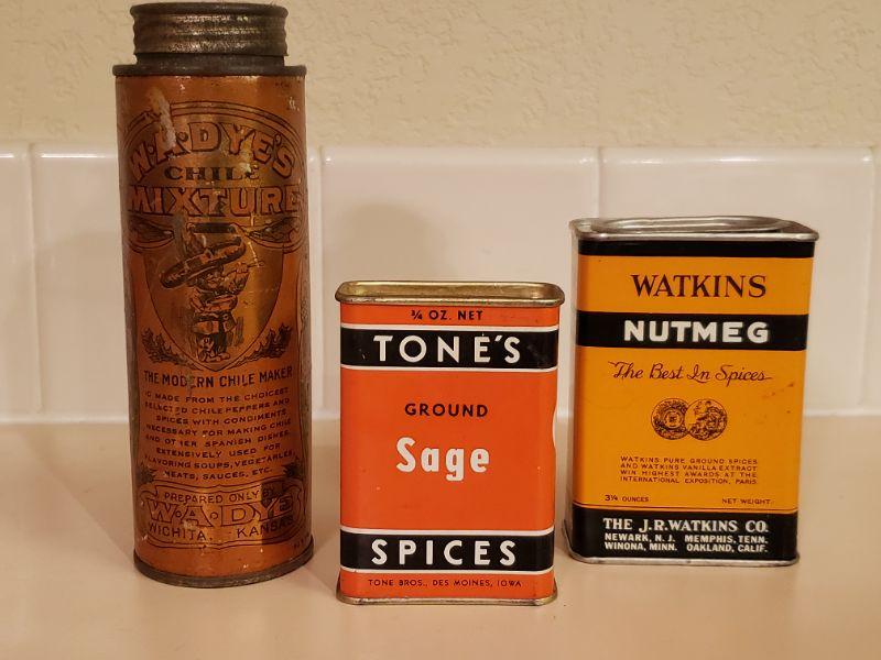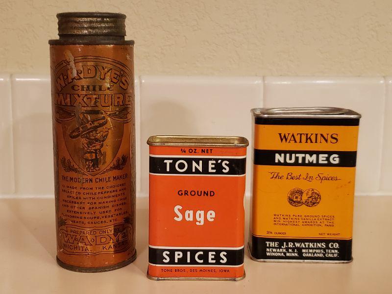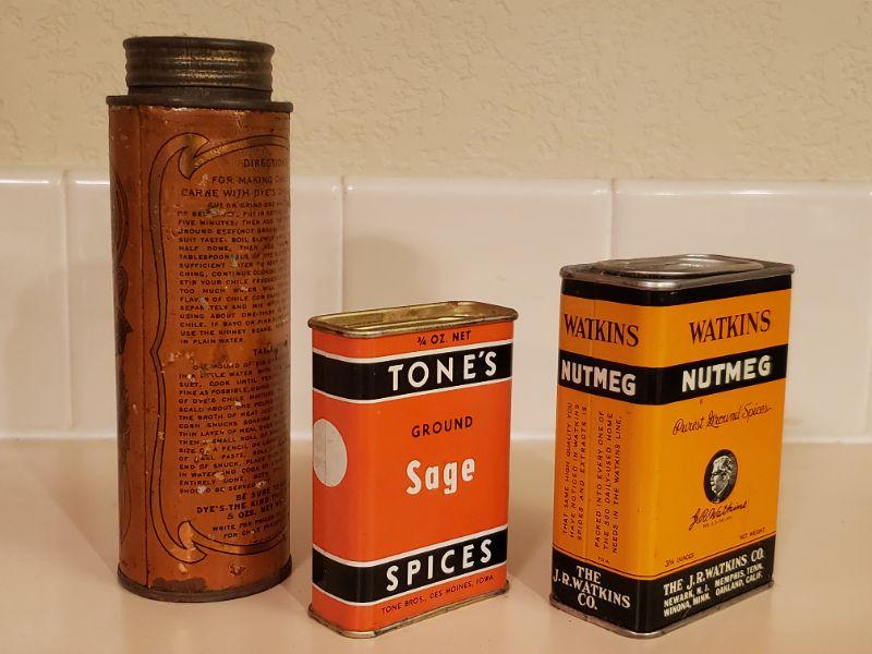 Lot 480: Antique/Vintage Sage, Nutmeg & Chili Seasoning) Tin