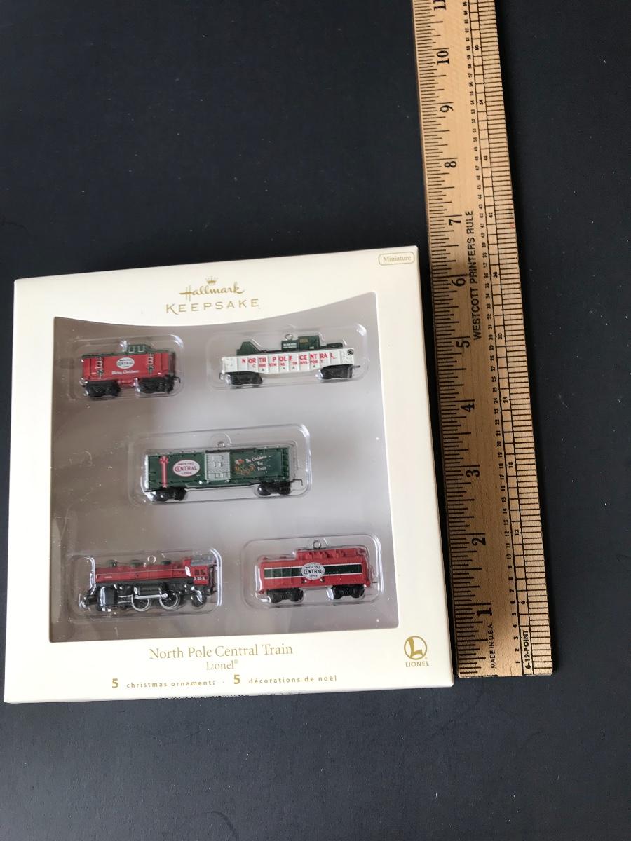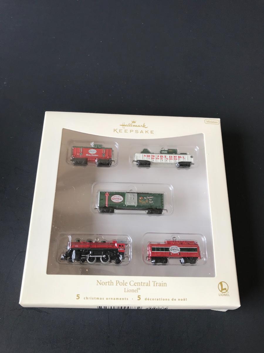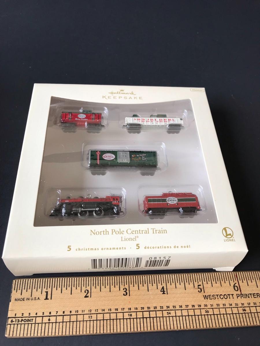 Train Christmas Ornaments - Hallmark Keepsake. All Holiday items in this auction are as-seen. The client collected a lot of holiday pieces and some are new in box, some were displayed once and come with original box, and some have been displayed and come with no box. They are all pre-owned in some fashion and have been stored in an attic or on shelf in library. Please see all pictures. The pictures show condition, measurements if taken, and what is included in the lot. Due to the large amount that we photograph and the time frame, we are not always able to take measurements. All items unless noted, are pre-owned and have been used. Thank you