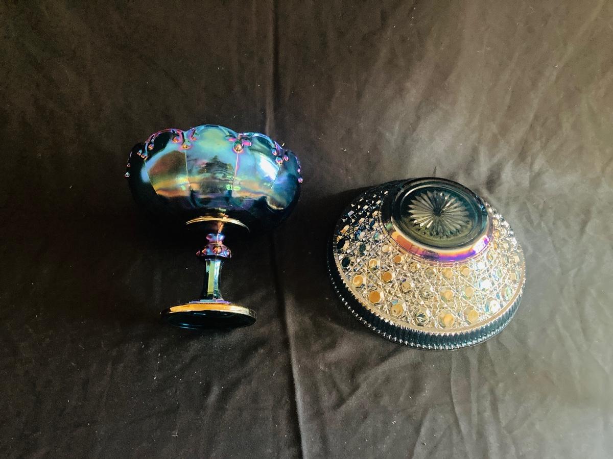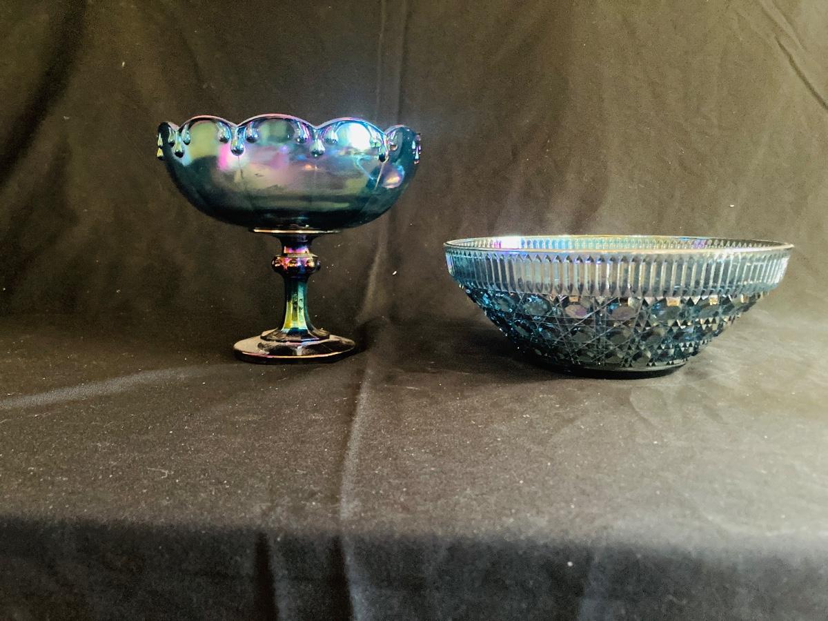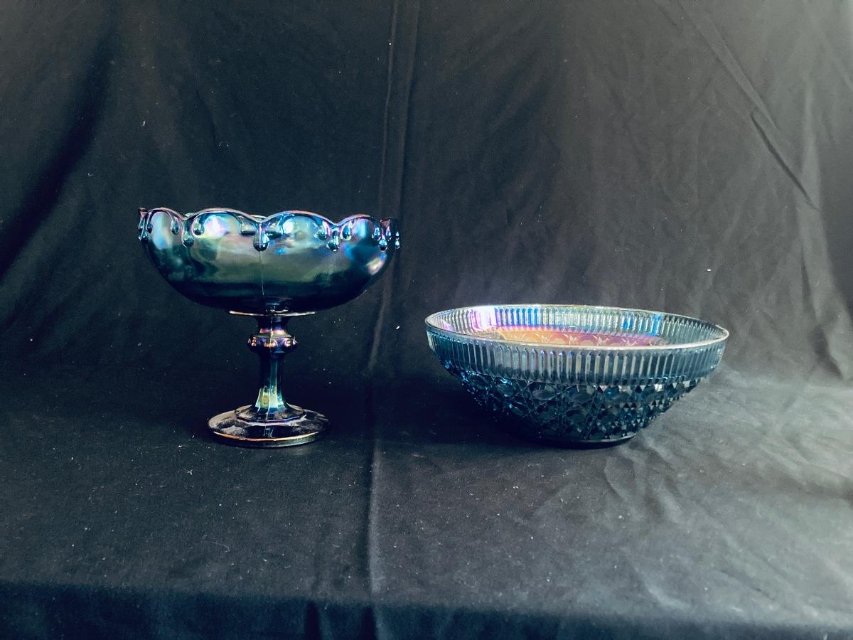 BLUE CARNIVAL GLASS BOWLS