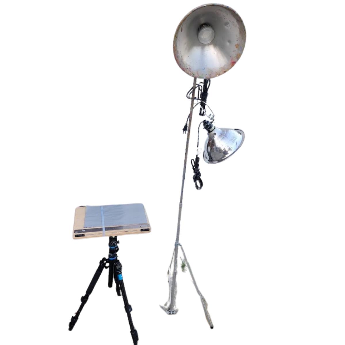 Lot 482 Adjustable Painting Stand Tripod With Adjustable Pole With Two Spotlights