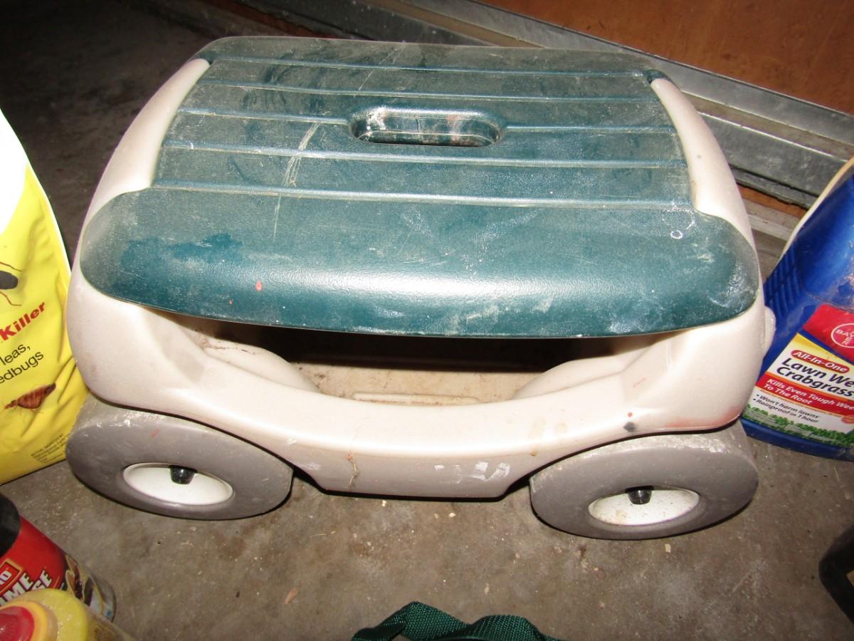 GARDENING SEAT WITH WHEELS AND STORAGE