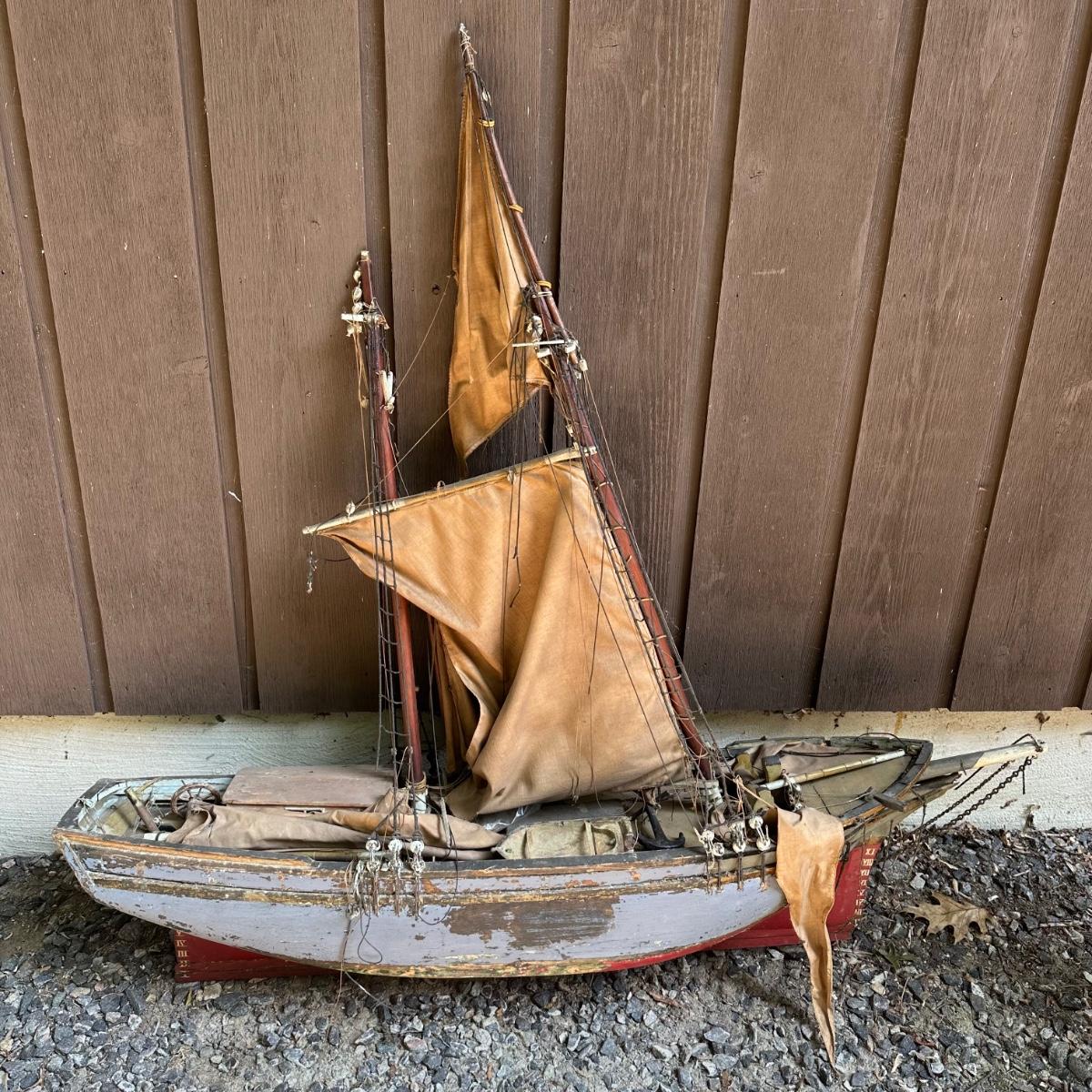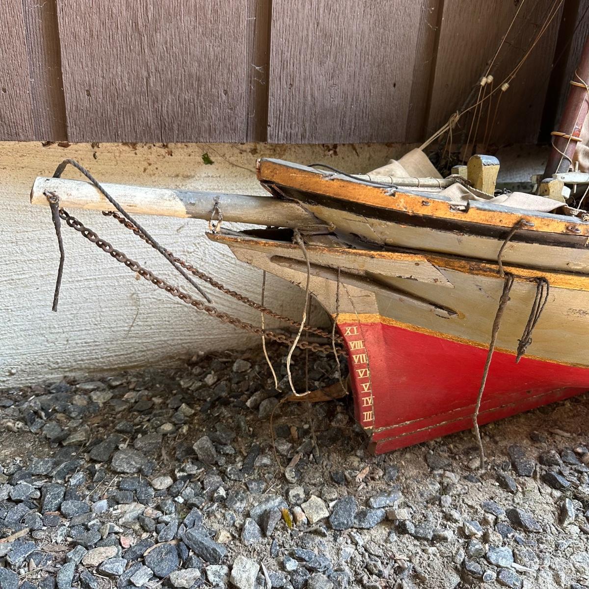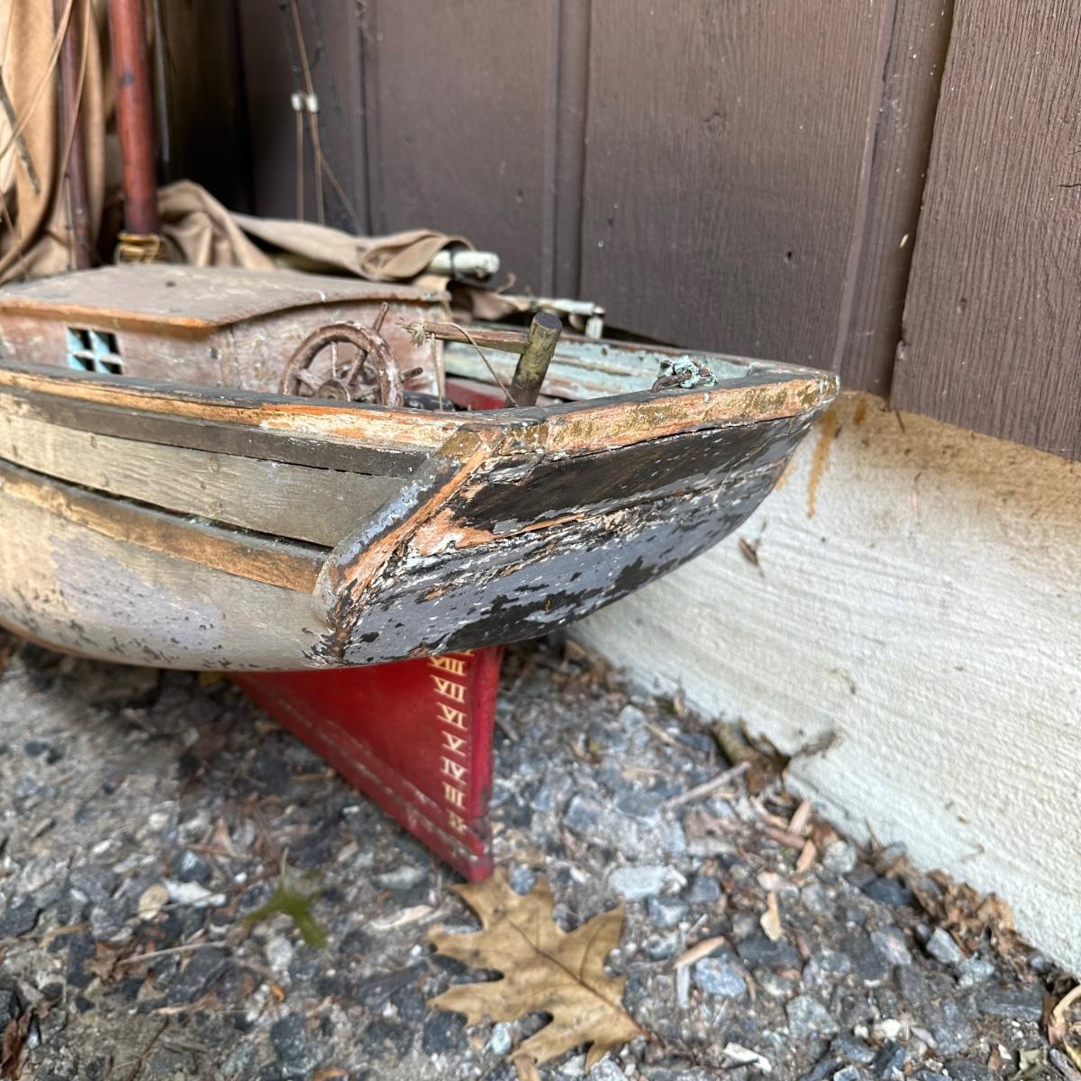 LOT 482G: Large Handcrafted Folk Art Painted Model Pond Boat Ship