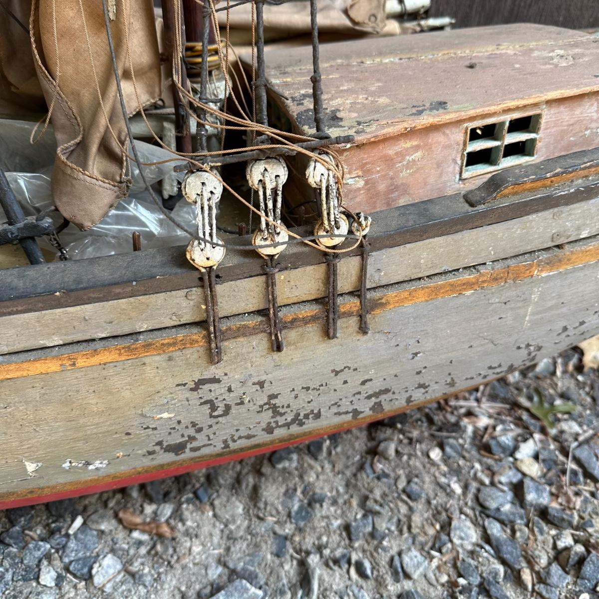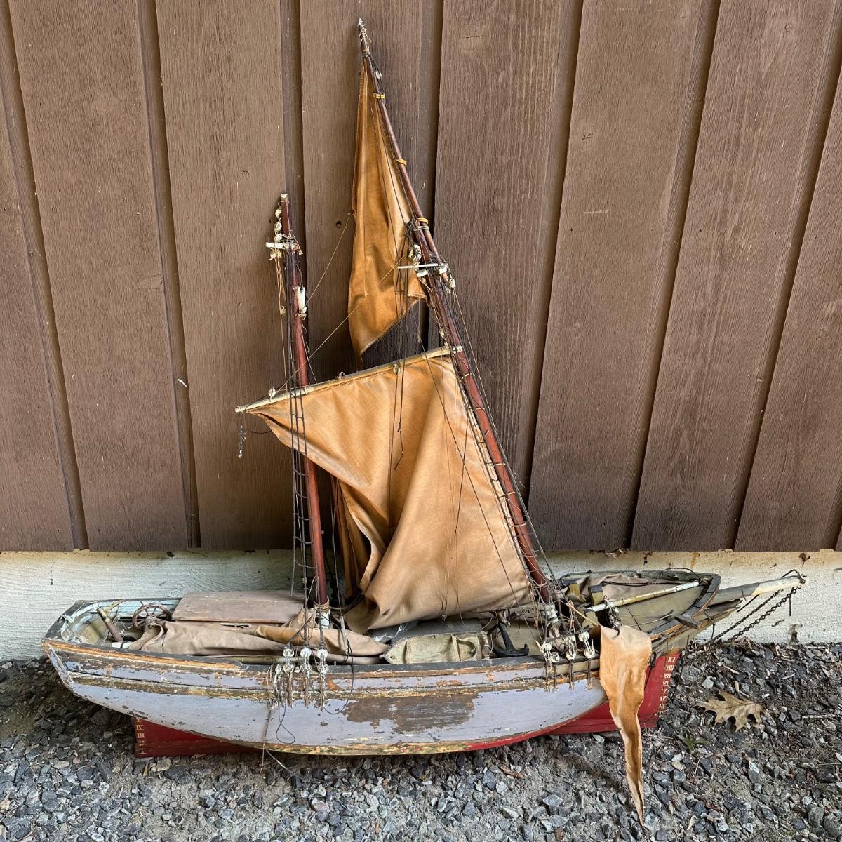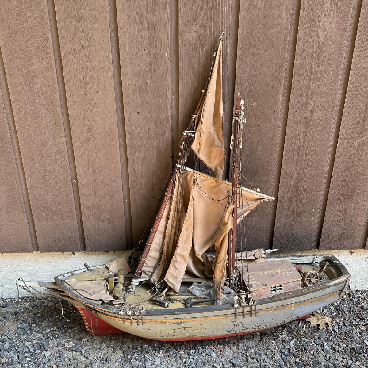 LOT 482G: Large Handcrafted Folk Art Painted Model Pond Boat Ship