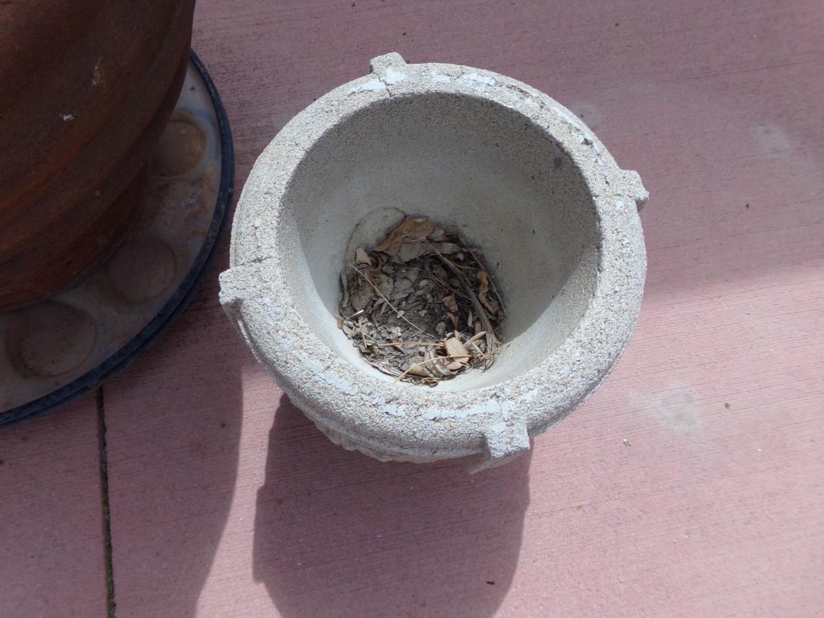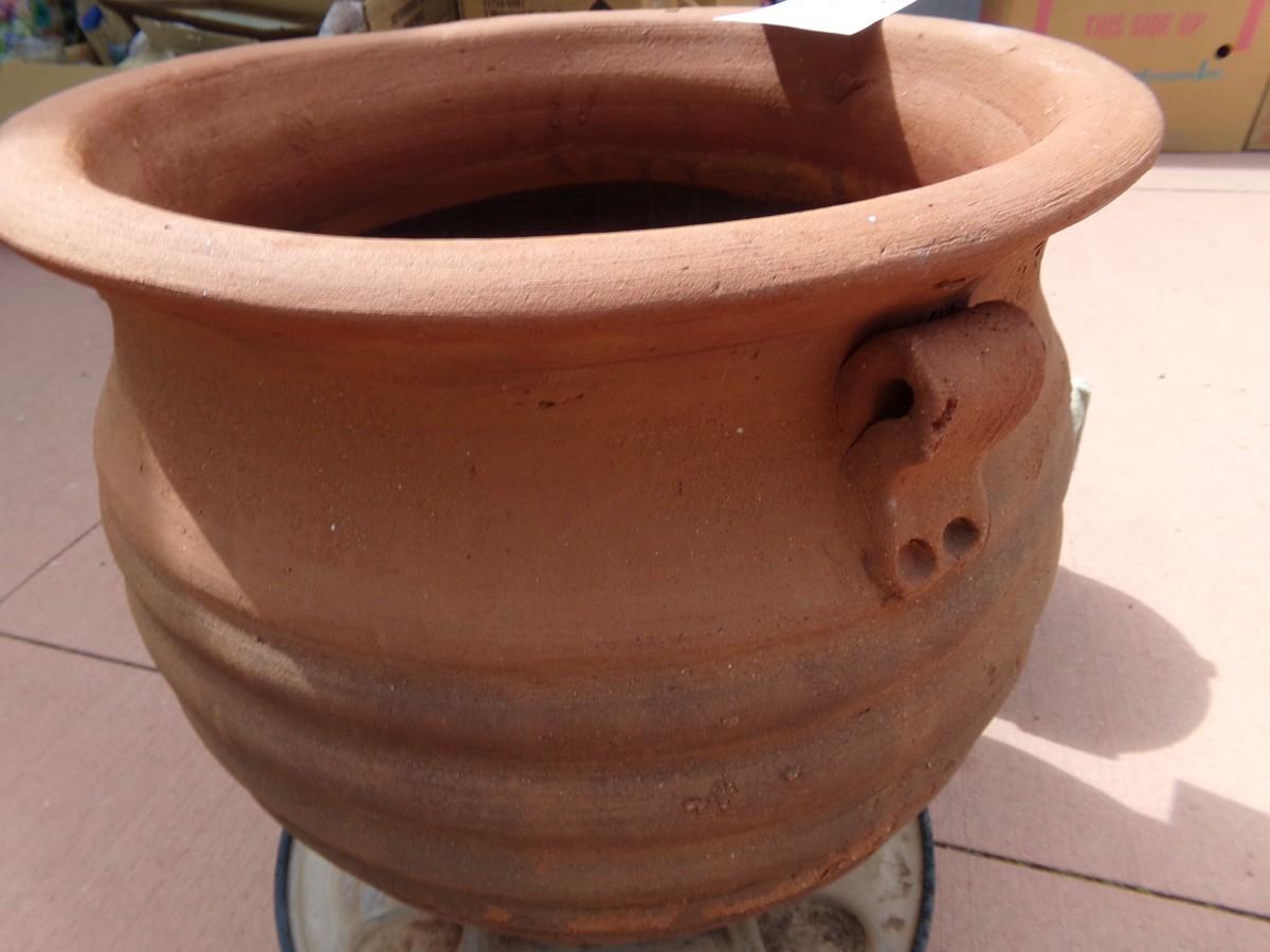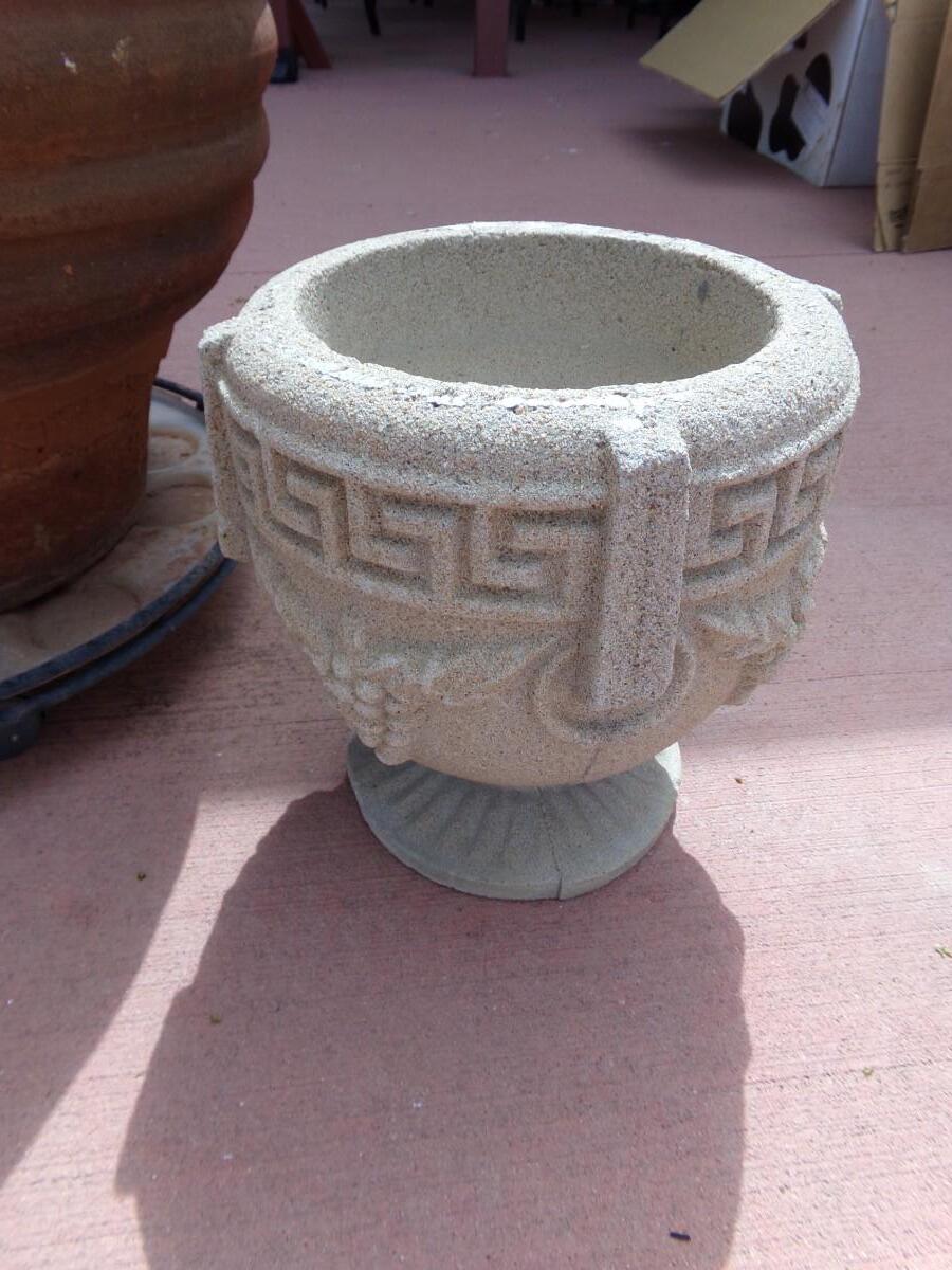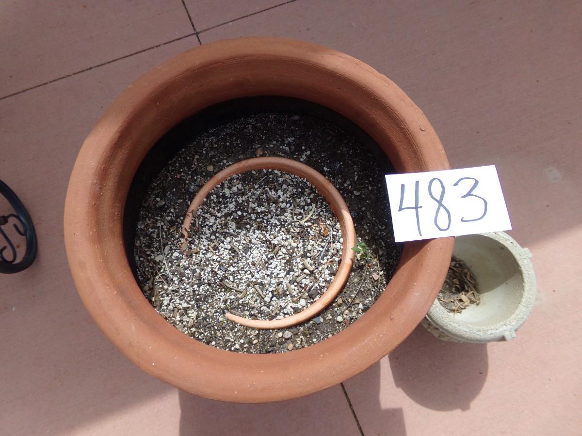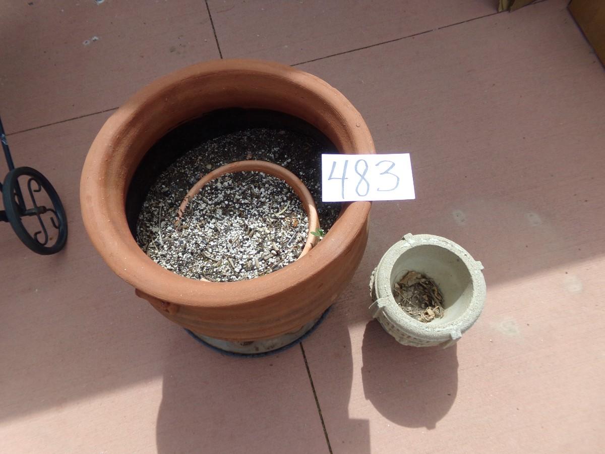 LOT 483 LARGE TERRACOTTA PLANTER AND SMALLER CONCRETE ONE