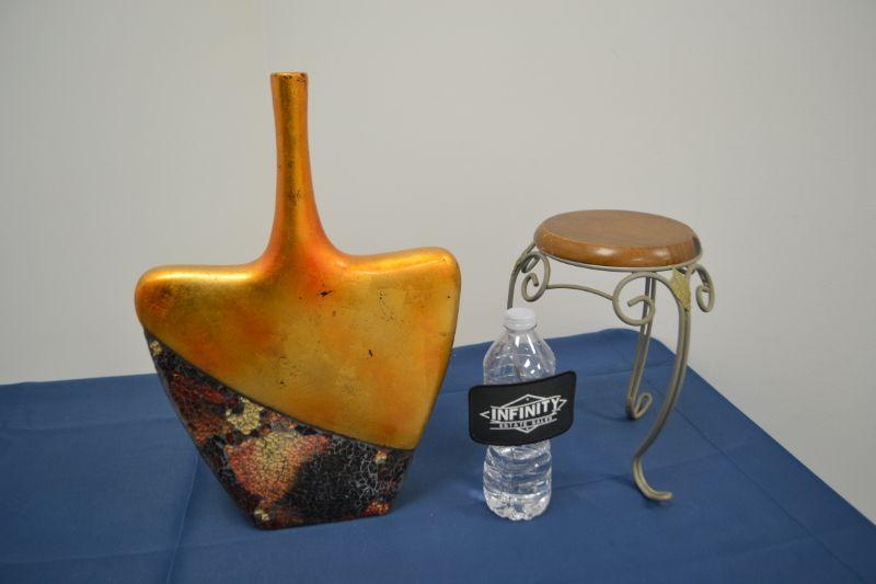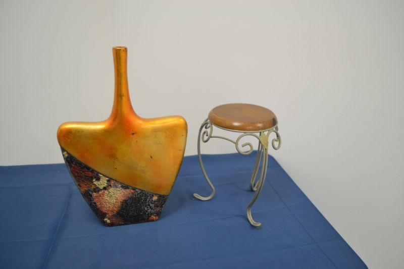 LOT 484 DECORATIVE VASE AND PLANT STAND