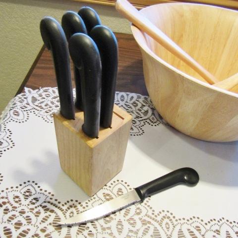 LOT  100  WOODEN SALAD BOWL & CUTLERY