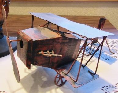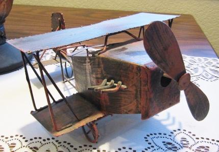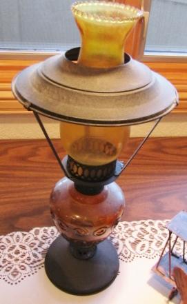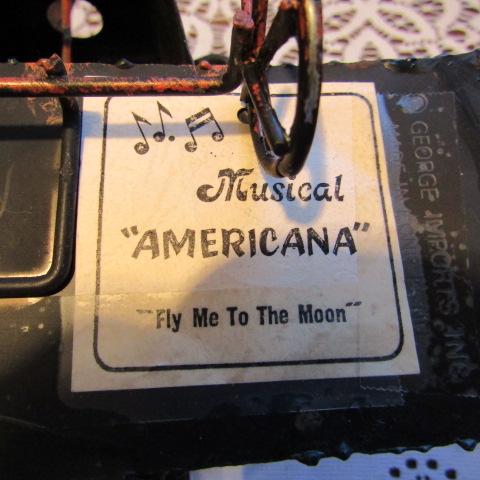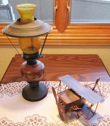 OIL LAMP AND MUSICAL AMERICANA METAL AIRPLANE THAT PLAYS "FLY ME TO THE MOON" WHEN IT'S PROP IS WOUND.