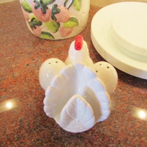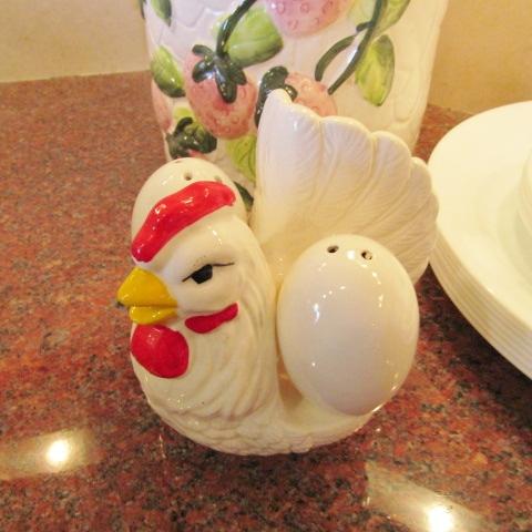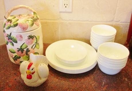 LOT  107  CORELLE DISHES, NESTING HEN & A COOKIE JAR